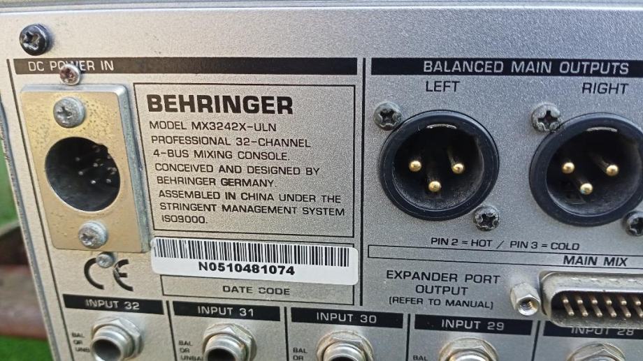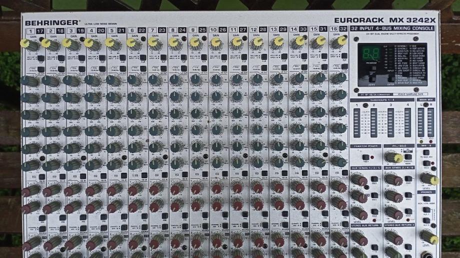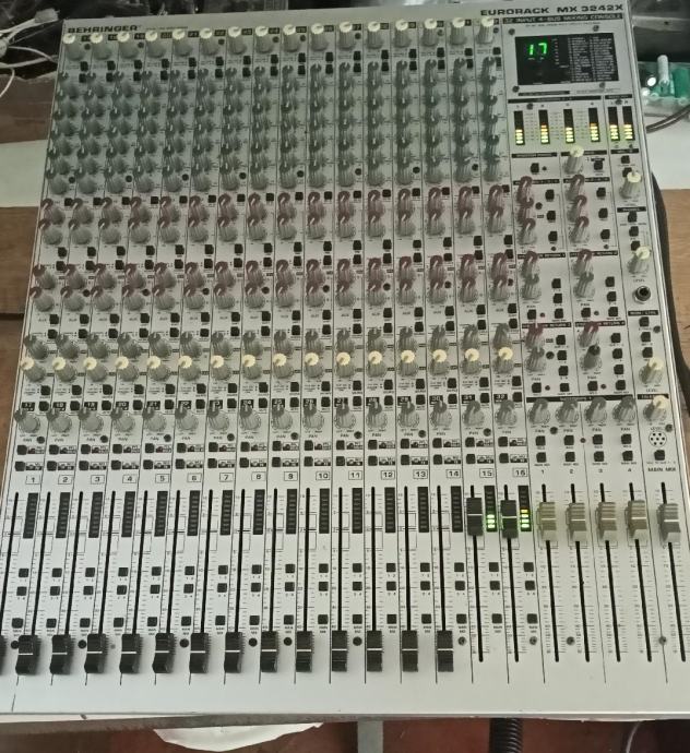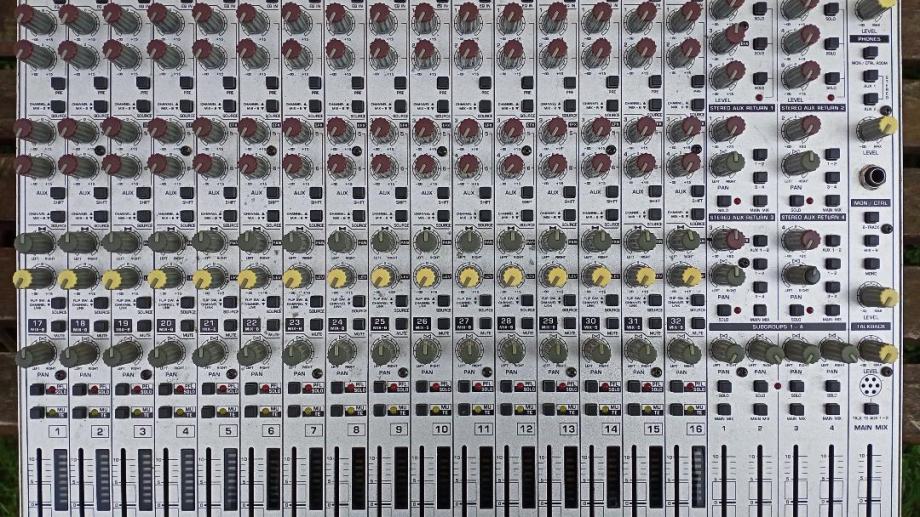 Rabljenu i sa tragovima korištenja, ali zato ispravnu do zadnjega detalja, jednu od behringerovih najboljih mikseta starog kova, prodajem za 240 eura fiksno, zadnja cijena. Sa Alps šiberima od 120 mm, vu-metrom za svaki kanal posebno (PFL), 4 sub grupe i 8 auxa, 32 digitalna efekta,