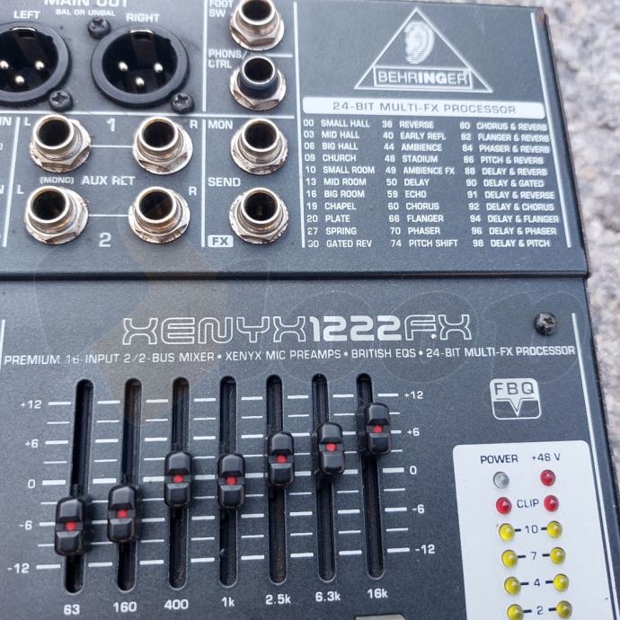 mikseta s ukupno 12 kanala, od čega 6 s mikrofonskim XLR ulazima, ugrađeni digitalni efekti i grafički equalizer.