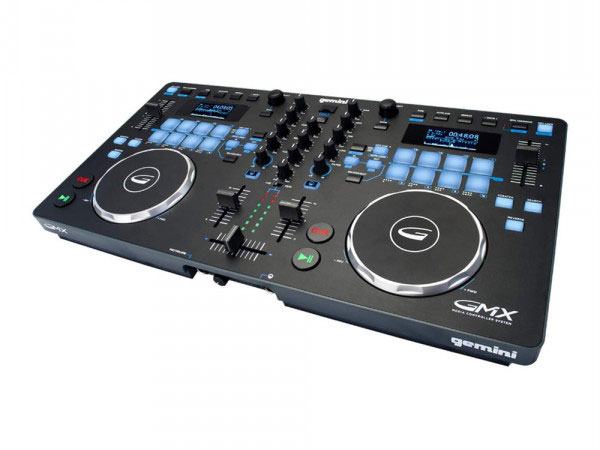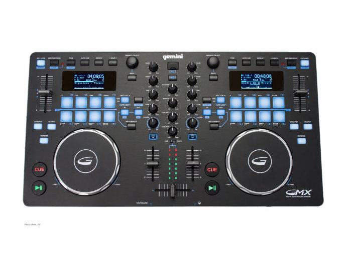 The Gemini GMX USB media player is a 2-deck DJ mixing console that combines MIDI controller and USB media player.