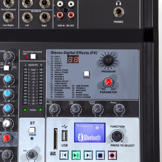 - DSP: with display / 24 types of effects / depth of each effect adjustable