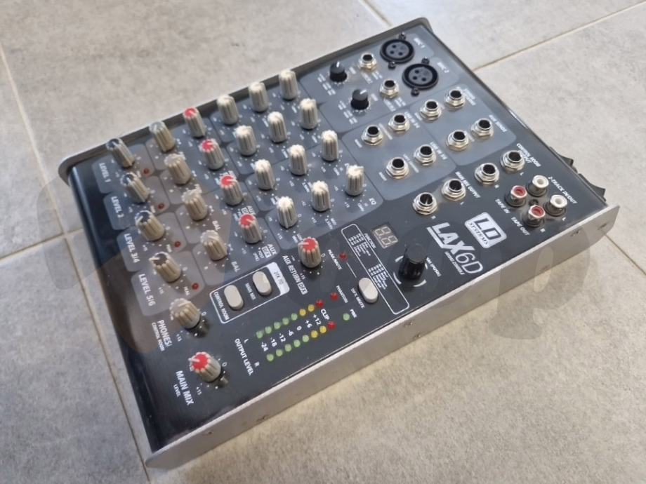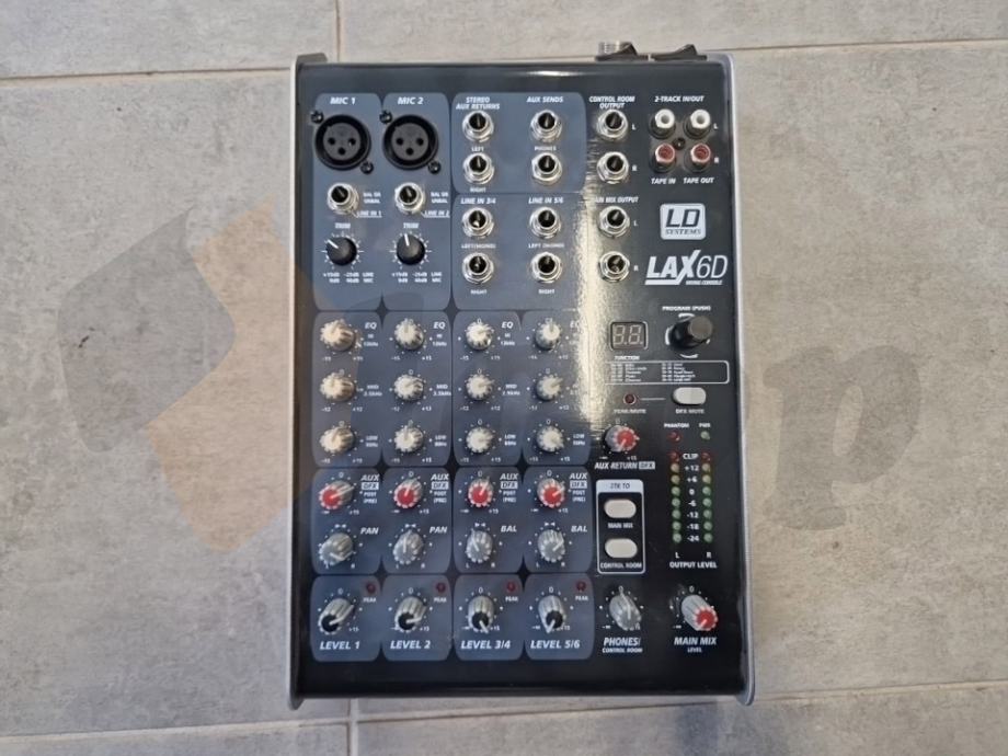 LD Systems LAX 6 D mikseta pripada seriji LAX pasivnih mikseta. Miksete iz LAX serije posjeduju jako dobar zvuk, standarne opcije koje treba imati svaka pasivna mikseta i sve to po prihvatljivoj cijeni. Pogodna je za različite primjene, od profesionalnih i kućnih studija do live nastupa. LD Systems LAX 6 D mikseta posjeduje integrirani DSP procesor sa bankom od 99 efekata. Sadrži ukupno 6 ulaznih kanala (2 mikrofonska mono kanala, i 2 linijska stereo kanala).