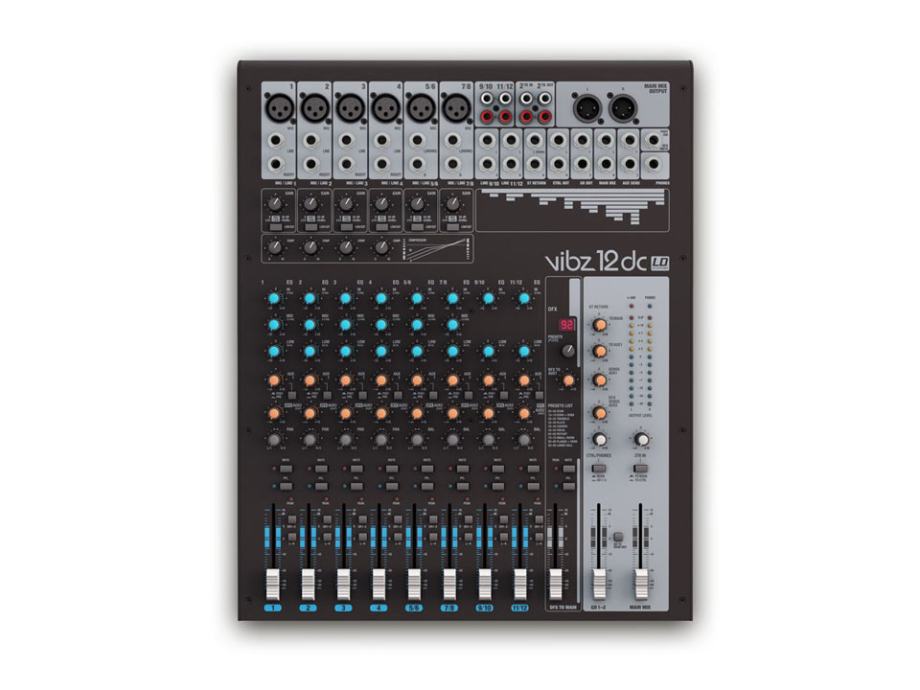 LD Systems VIBZ 12 DC je analogni mikser sa šest mikrofonskih ulaza koji imaju visokokvaliteta pretpojačala i mogu biti mono linijski ulazi. Uz to ima još četiri stereo linijska ulaza, integrirani kompresor na četiri kanala, 100 digitalnih efekata s 24-bitnom rezolucijom, fantomsko napajanje, tropojasni EQ po kanalu, PFL preslušavanje, Mute prekidače, izlaz za slušalice itd. Tu su i ulazi i izlazi koji omogućuju priključivanje uređaja za snimanje i reprodukciju. Iznimno je jednostavan za korištenje i impresionirat će vas svojim transparentnim i detaljnim zvukom. Idealan je za manje do srednje bendove, instalacije, kućna snimanja ili za kao sub-mikser za klavijaturiste ili bubnjare. Dolazi s vanjskim napajanjem koje se može čvrsto pričvrstiti na mikser. Nožni prekidač za aktiviranje efekata i adapter za montažu na mikrofonske stalke VIBZ 12 dostupni su kao dodatna oprema.