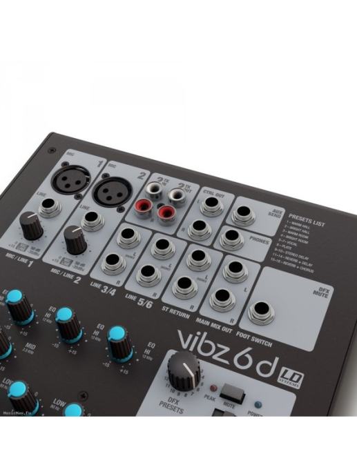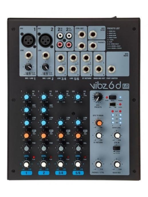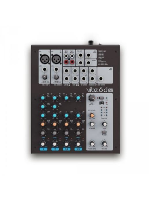 Mikseta s 6 kanala, odlična za kućni studio ili manje bendove; 2 mikrofonska ulaza sa visokokvalitetnim pretpojačalima, fantom napajanje i 3-band EQ, 2 stereo line ulaza sa 2-band EQ-om i 16 digitalnih efekata.