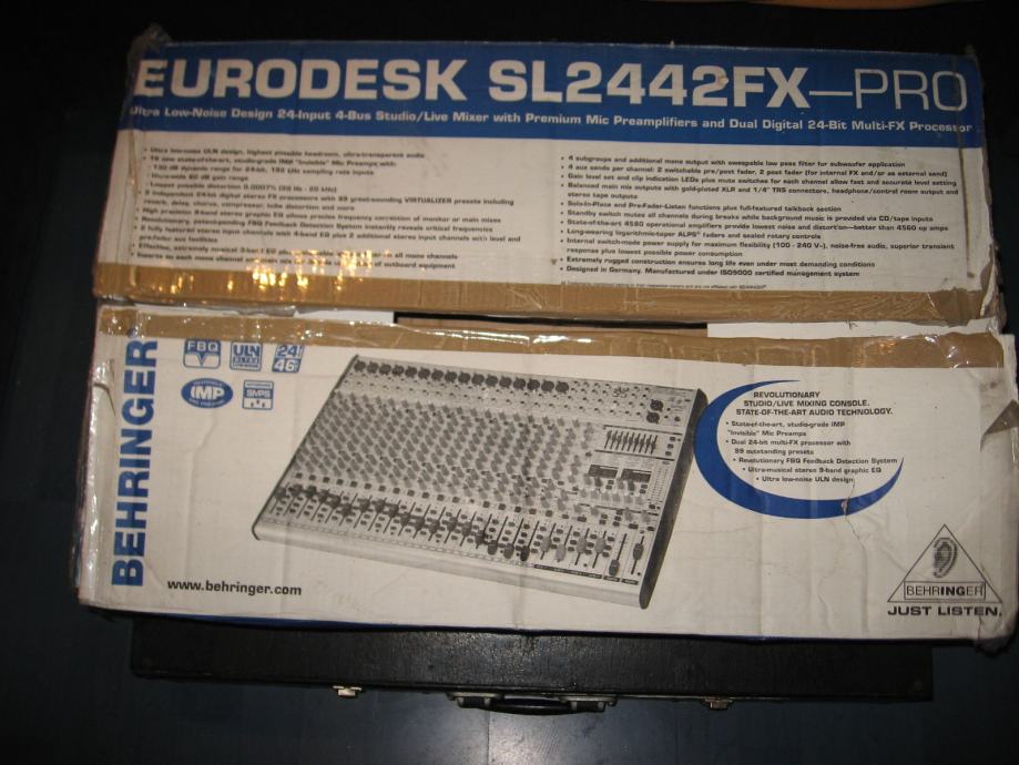 Potpuno kao novi, nekorišten 24 cha mixer Behringer SL 2442 FX-PRO, 16 XLR, plus 4 stereo cha, 2 intergrirana efekt procesora sa 99 preseta, 4 sub grupe, 9x equalizer, main i mono output, 2x stereo FX return, 2x FX send, CD record out, phones i control room kontrola, 48 V fantom napajanje, uz mixer poklanjam ručno rađeni, vrlo robustan kofer, mogučnost skidanja gornjeg poklopca, tako da je mikseta uvijek u koferu, stanje kao iz dučana, 10/10 !! Mikser idealan za gaže, nije težak, i nije prevelik. Uz mikser dolazi i orginal ambalaža !! Moguća zamjena za aktivne kutije- satelite, moguća i moja nadoplata !!