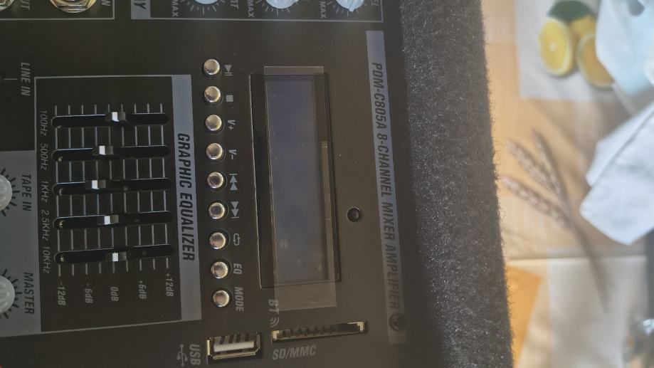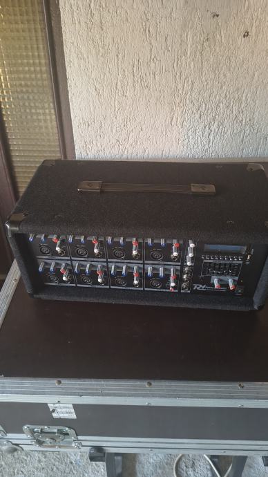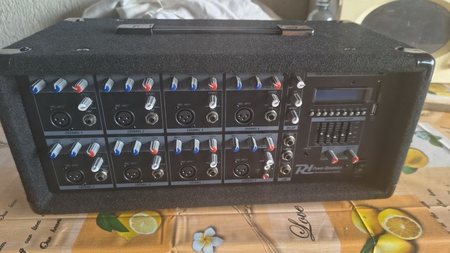 Mikser iz naslova, nov s računom. Od efekata ima delay. 150 w po kanalu. Osam kanala. Iz usluge može na 099 36 33 002