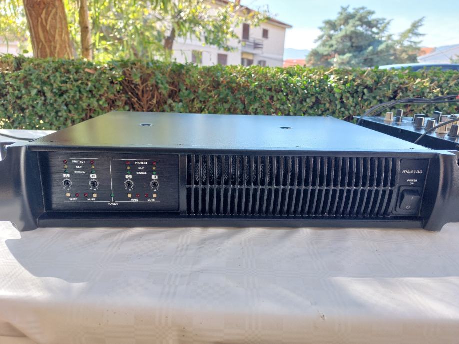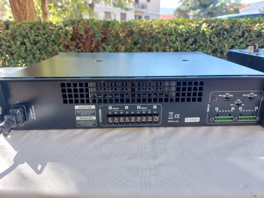 P.Audio POJACALO IPA4180 100% ispravno: IPA 4180 instalacijsko višekanalno pojačalo, snaga 4x180W(4Ω) / 4x100W(8Ω) / 2x360W(8Ω) bridge, D-class, Stereo/Bridge način rada, euroblock konektori, Lo-pass, Hi-pass filteri, 2HE, 7 kg.