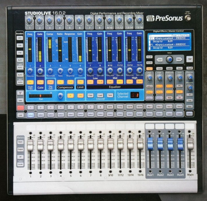 To je mjesto gdje je PRESONUS StudioLive 16.0.2 dolazi u dvojne namjene stol koji ima za cilj ponuditi 'digitalni objekt sa analognog jednostavnosti', u 16.0.2 je kompaktan, prenosiv 16: 2. Dizajn s 12 mono mikrofona ulaza plus dodatni stereo ulaz opcije na najvišim četiri kanala. Ona ima puno ugrađene DSP efektima i, kao i četiri pomoćna (AUX) šalje. Tu je i dvosmjerna, 16-kanalni FireWire sučelje za snimanje i reprodukciju, upravljačku MIDI sučelje, i posvećena je Talkback objekta. Iako je osmišljen kako bi biti pogodna za studio za snimanje previše, ja ću se usredotočim na korištenje 16.0.2 kao stand-alone mikser za live upotrebu.
