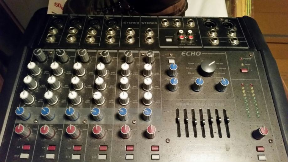 Power mixeta finog tona sa mogućnosti podešavanja duljine delaya. Snage 2×200w/4om. Dvije brzine rada ventilatora za hlađenje pojačala.