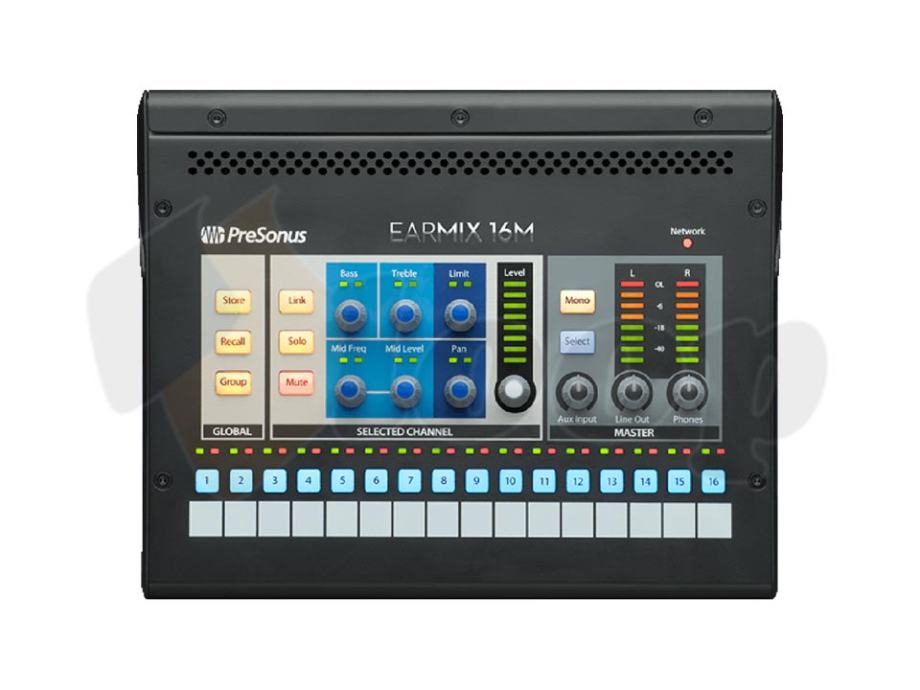 Jednostavno sučelje PreSonus EarMix 16M AVB-mrežnog osobnog miksera uvelike olakšava nastup svakom izvođaču intuitivno podešavanje vrhunskog zvuka izuzetno brzo uz pomoć ovog monitoring miksera. Potrebno je samo nekoliko sekundi za odabir bilo kojeg od 16 kanala, optimiziranja glasnoće i postavljanja u stereo audio polje. Nakon što ste podesili Vaš savršeni miks možete dodatno ‘zasladiti’ zvuk uz pomoć ekvalizatora i limitera – dostupno po svakom kanalu kao i na stereo miks bus masteru. A najbolji dio je to da možete pohraniti do 16 postavki miks scena na EarMix 16M mikseru, tako da su postavke uvijek spremne za opoziv, što uvelike olakšava dodatno postavljanje iz gaže na gažu.