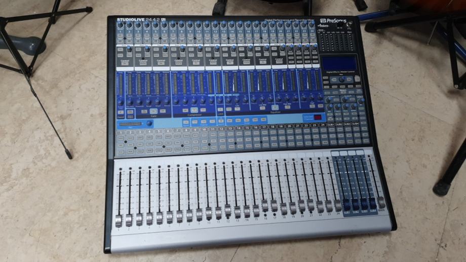 24-kanalni digitalni mikser koji je u potpunosti promijenio pristup miksanju uživo, te Vam pruža puni set istinski korisnih "alata" za snimanje studijske kvalitete. Baziran na 24 PreSonus XMAX mikrofonskim pretpojačalima i aktivnim integriranim DSP-om, ova digitalna konzola Vam pruža izuzetnu kvalitetu zvuka i fleksibilno procesiranje. I još nešto, ugrađeni LAN (sa WiFi vezom) i opsežni FireWire 800 priključak čine snimanje zvuka i daljinsku kontrolu izuzetno jednostavnom. Ako tražite konkurentan i "jednostavan-za-korištenje" digitalni mikser po izuzetnoj cijeni, StudioLive 24.4.2AI je pravi izbor za Vas.