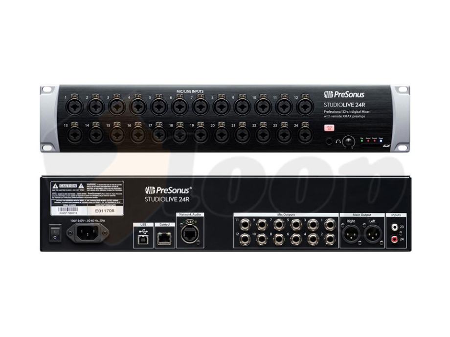 24-kanalni digitalni rack mikser s 26 ulaza! Izuzetne performanse bilo da ga koristite kao rack mikser ili stagebox za Vašu StudioLive Series III konzolu. Sadržava 24 XMAX pretpojačala vrhunskog zvuka, fleksibilni niz ulaza i izlaza te opsežno usmjeravanje koje čini ovaj mikser izuzetno korisnim za mnoštvo aplikacija uživo. Ovaj mikser jednako se ponaša kod kuće ili u studiju, sadržava 40 ulaza / 40 izlaza USB i 55 ulaza / 55 izlaza AVB audio interfejse. Mogućnost snimanja direktno na SD karticu također je podržano, što čini stvaranje instantnih snimki svirke uživo izuzetno jednostavnim. Oblikujte svoj zvuk do samog savršenstva zahvaljujući vintage ekvalizatoru i kompresiji po svakom kanalu, zajedno sa širokim spektrom reverb i delay efekata. StudioLive 24R dolazi upotpunjen s bežičnom kontrolom putem Vašeg računala ili pametnog telefona/tableta.