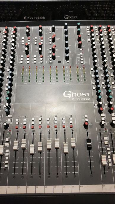 Soundcraft Ghost 32 LE s napajanjem + meterbridge (32 kanala(+32 tape return kanala),parametric EQ, 8 aux sendova, 8 grupa), više o mikseru: http://www.soundonsound.com/sos/1996_articles/oct96/soundcraftghost.html