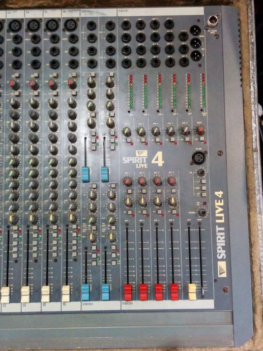 Prodajem miksetu Soundcraft SPIRIT LIVE 4, 20 ulaza (16 + 4 stereo), 4 grupe, 5 aux-a, phantom power (+48V), napajanje dolazi u paketu, u dobrome stanju i uz miksetu dolazi flight case.