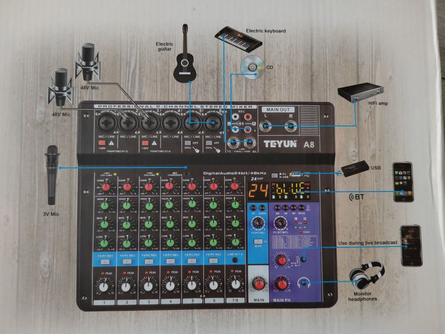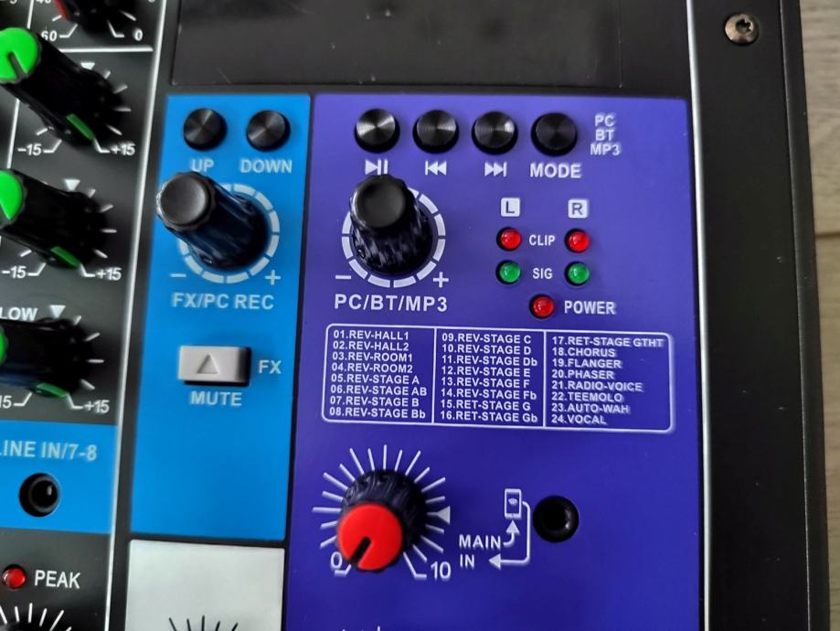 mikseta s 8 kanala (od čega čak 6 s mikrofonskim XLR ulazima), ugrađeni digitalni efekti, USB, Bluetooth i MP3 player.