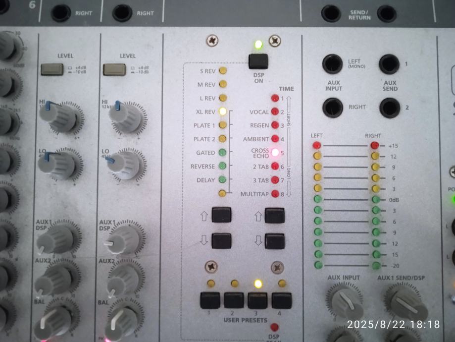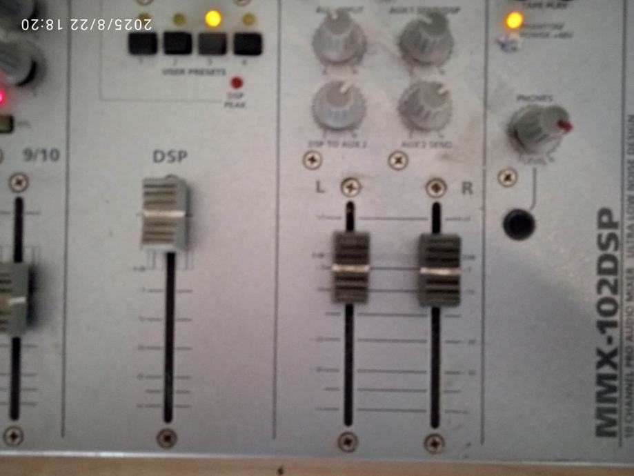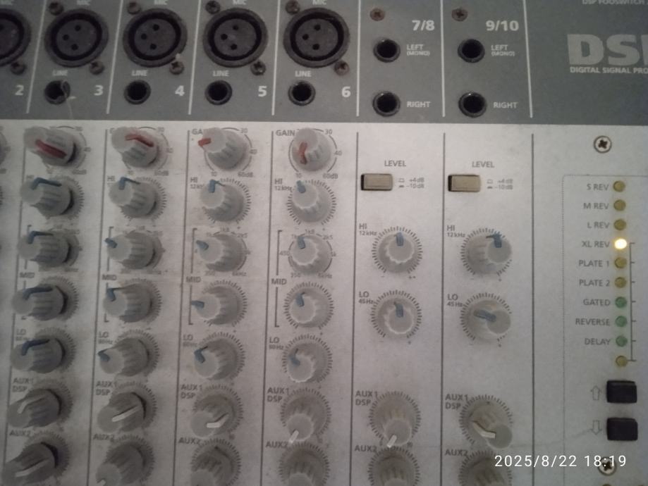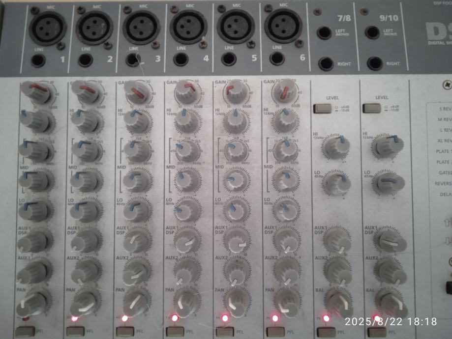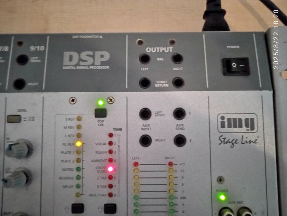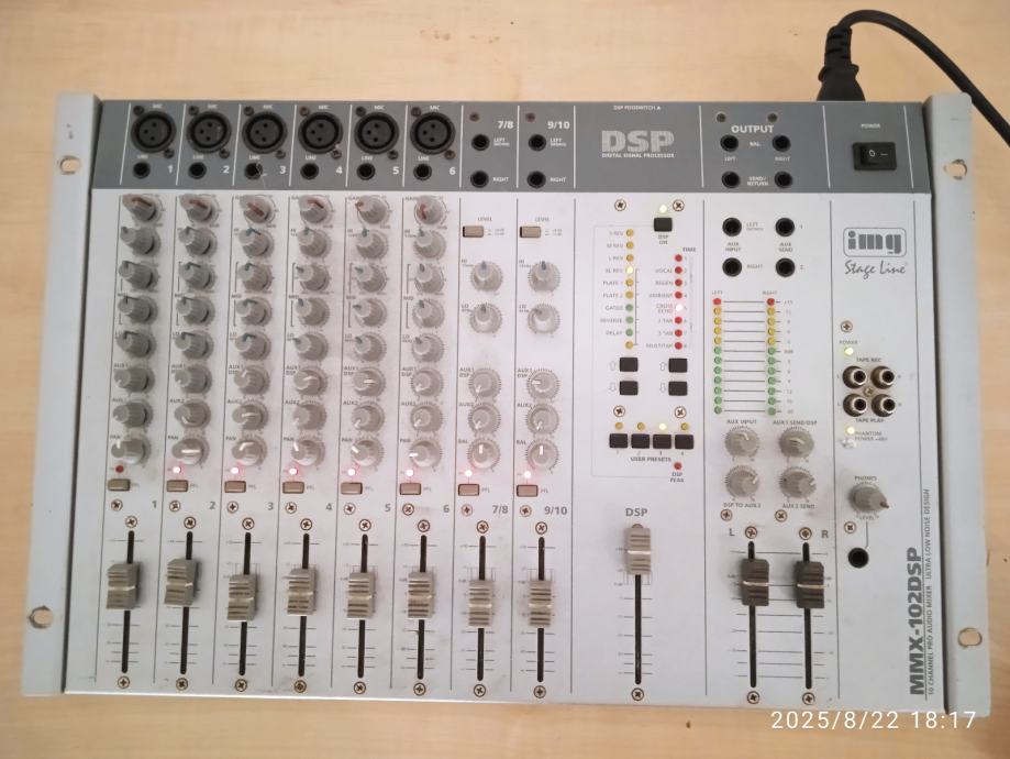 Potpuno ispravna Stage Line 10 kanalna mikseta.6 mikrofonskih ulaza I dva linijska stereo ulaza.Izlazi linijski -10 dbu I balansirani pro +4 dbu,za kucni studio,ozvucenje bubnjeva,za D J.ili coffee bar za ozvucenje.