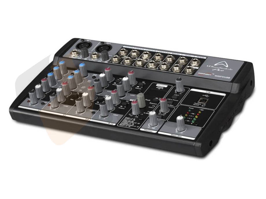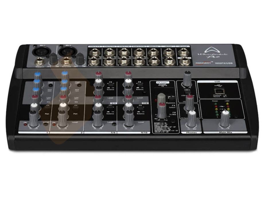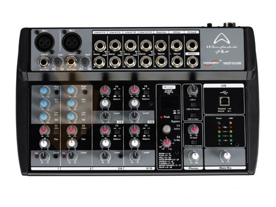 Wharfedale Pro Connect 1002FX/USBB je kompaktni mali mikser s ogromnim mogućnostima. Uz dva mikrofonska/linijska (XLR+ TRS 6,3mm) i četiri stereo linijska (TRS 6,3mm) ulaza, dodana su još i četiri izlaza (TRS 6,3mm),FX procesor s 56 prostornih i modlulacijskih efekata, te USB port za snimanje na računalo. Tu je još i izlaz za slušalice, tropojasni EQ na svim mic kanalima i fantomsko napajanje za kondenzatorske mikrofone. Wharfedale Pro je uspio sažeti dovoljno ulaza, izlaza i drugih digitalnih značajki u tako mali uređaj, pa ga možete ponijeti svuda sa sobom i snimati u studijskoj kvaliteti!