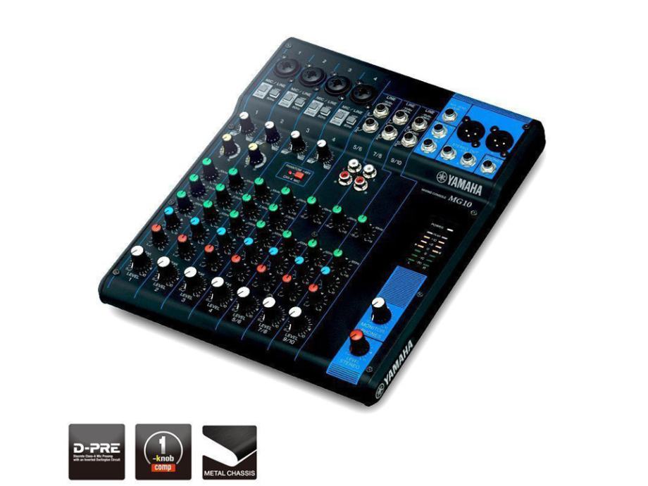 10-kanalni mikser s četiri mikrofonska ulaza / 10 linijskih ulaza (4 mono + 3 stereo), jednim stereo busom + 1 AUX-om! “D-PRE” mikrofonska pretpojačala s invertiranim Darlington strujnim tokom. U kompletu s mikserom dolazi +48V fantomsko napajanje, XLR balansirani izlazi, metalno kućište.