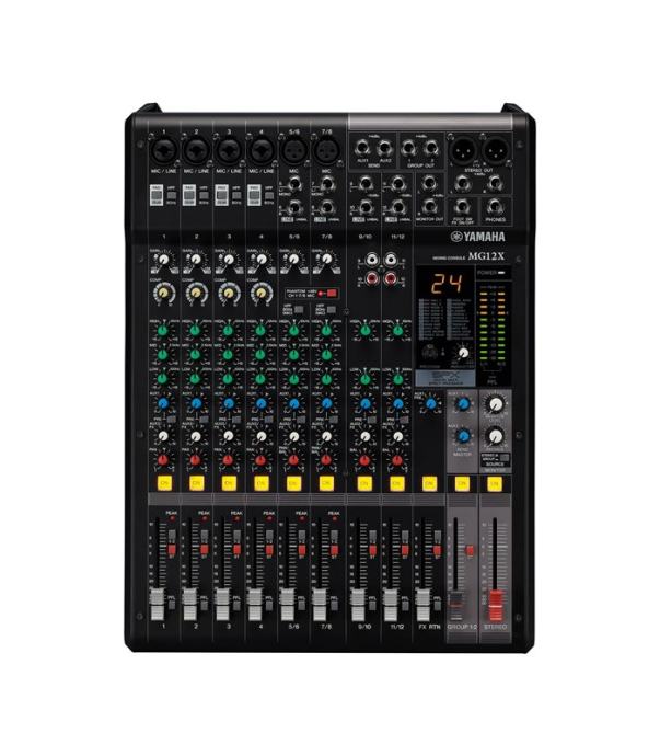 12-kanalni mikser: Max. 6 Mic / 12 Line ulaza (4 mono + 4 stereo) / 2 GROUP Buseva + 1 Stereo Bus / 2 AUX (uklj. FX)