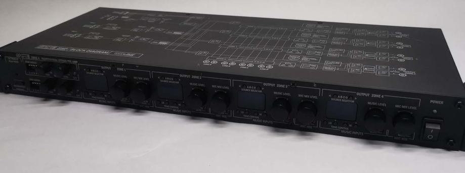 Ispravan, 4 ulaza, regulacija 4 zone, bass/treble, digitalne kontrole, mikrofonski ulazi...