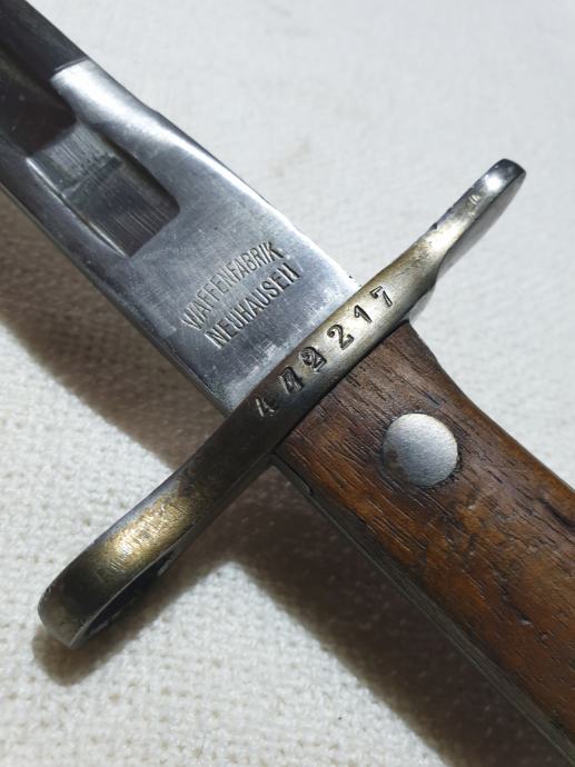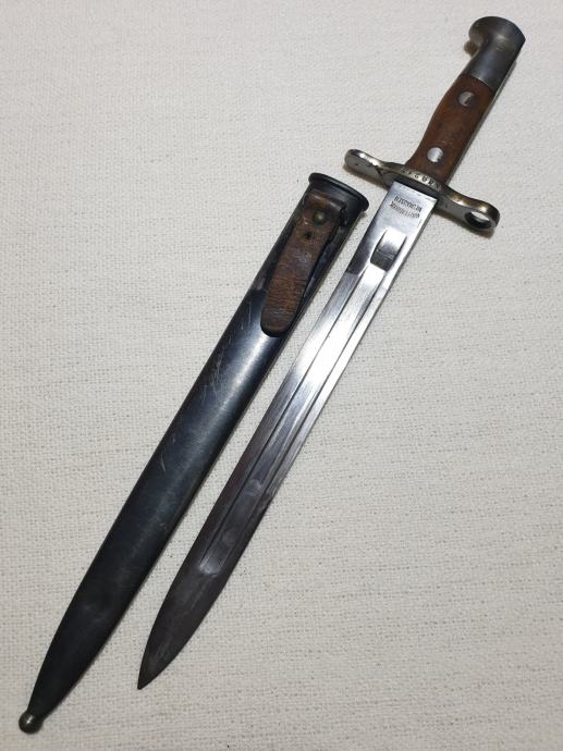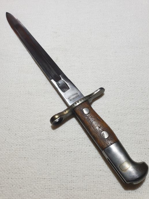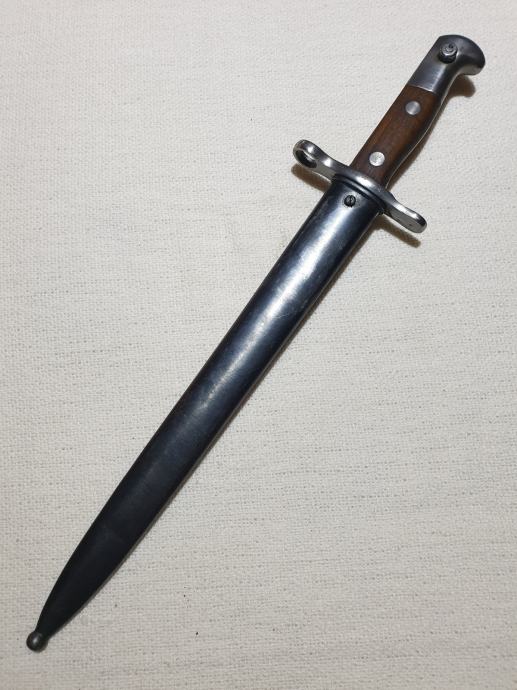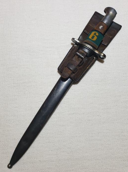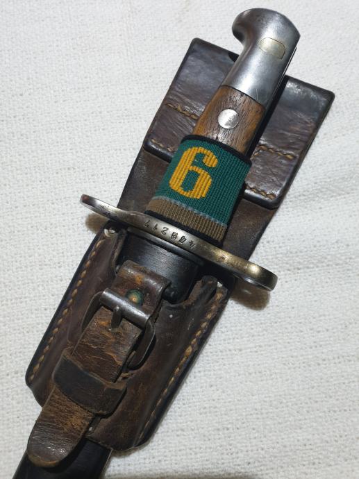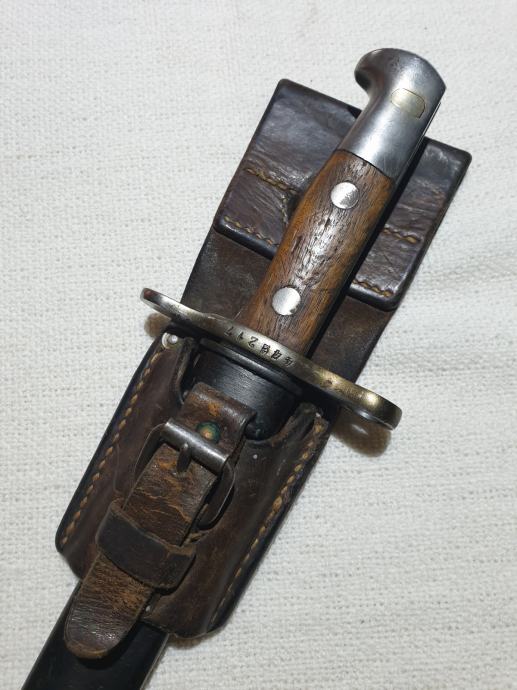 Švicarski bajonet 1889/1899, za kratki karabiner Schmidt Rubin 1900, originalni kožni visak iz godine 1940 & epoleta CH vojnika