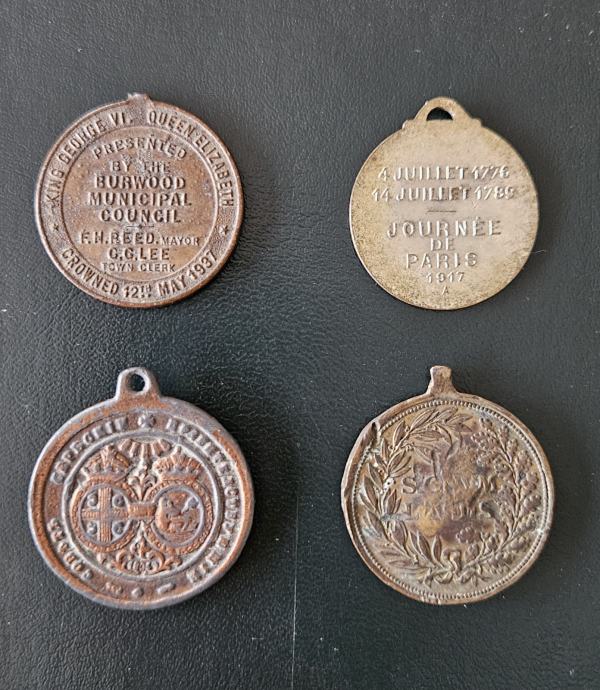 4 medalje - povoljan lot, Francuska 1917., Britanija krunidba 1937.