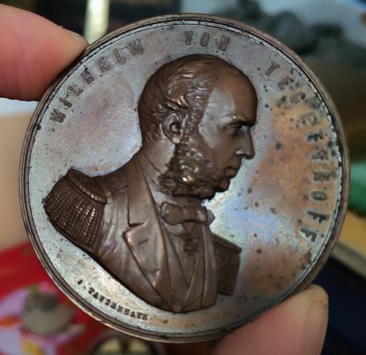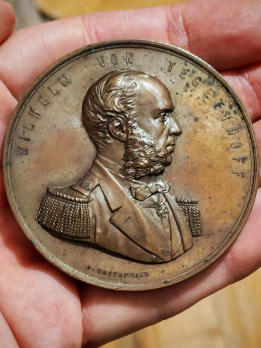 Original patina, izuzetno očuvana kvalitete XF / aUNC - velika broncana medalja admirala Wilhelma von Teggethoffa, junaka i pobjednika u velikoj pomorskoj bitci kod otoka Visa 1866.g.