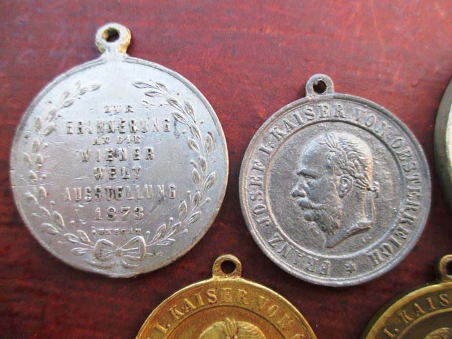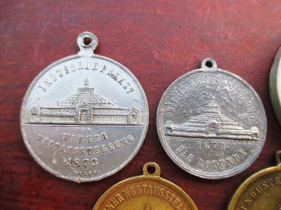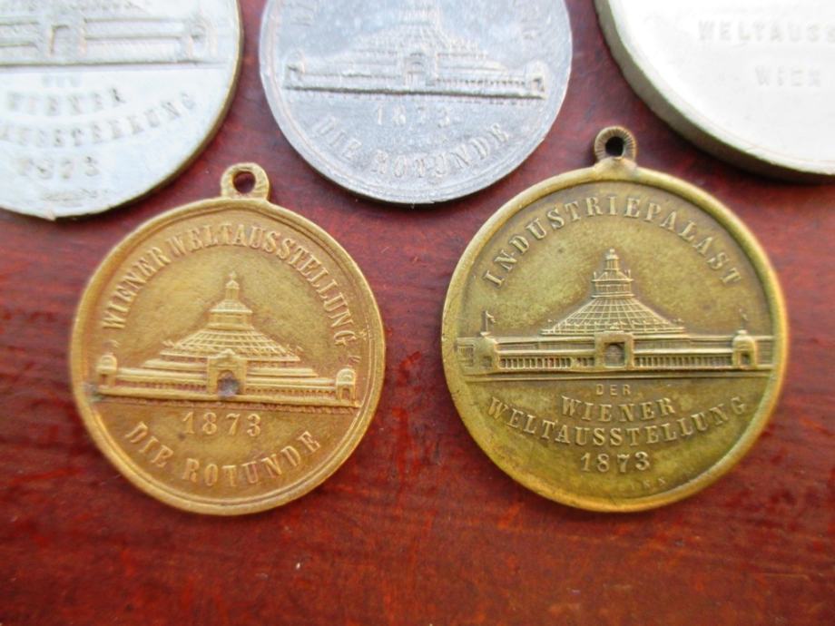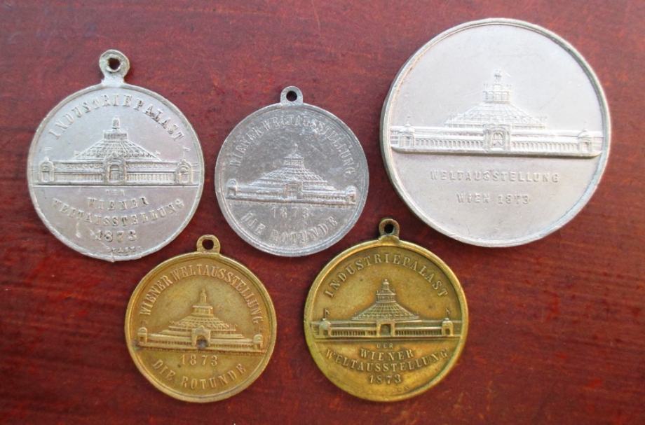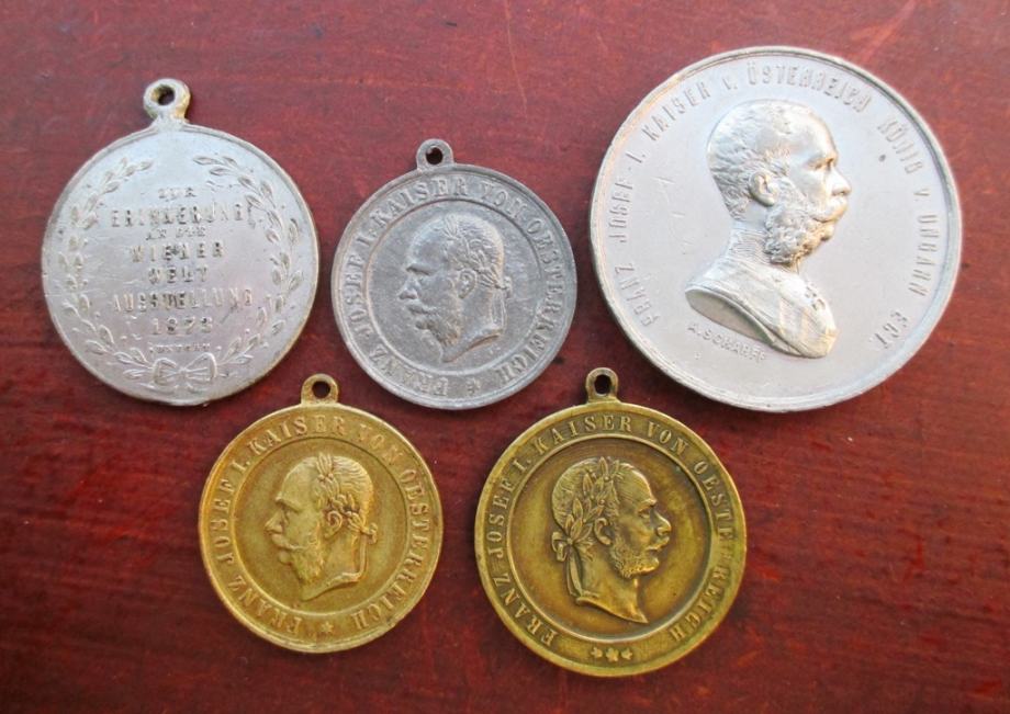 Franjo Josip I. - spomen medalje s "expo" izložbe u Beču 1873. - izrada od kositra i mesinga - pet komada različitih.