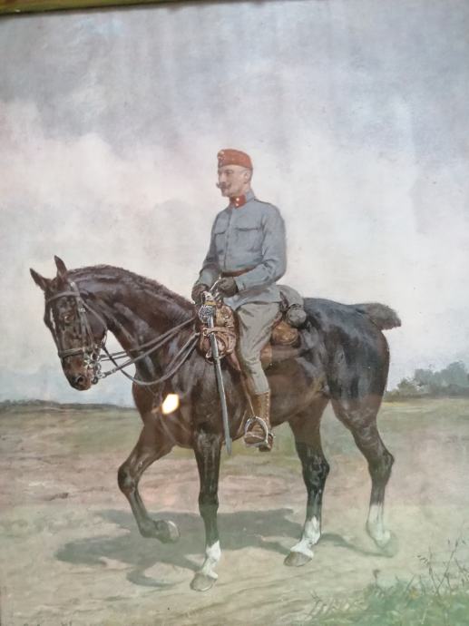 Austrougarski časnik na konju - slika - Beč - 1917. - potpisano - top
