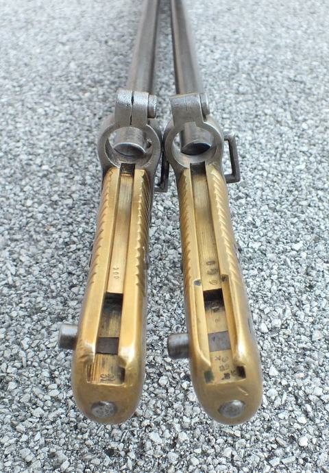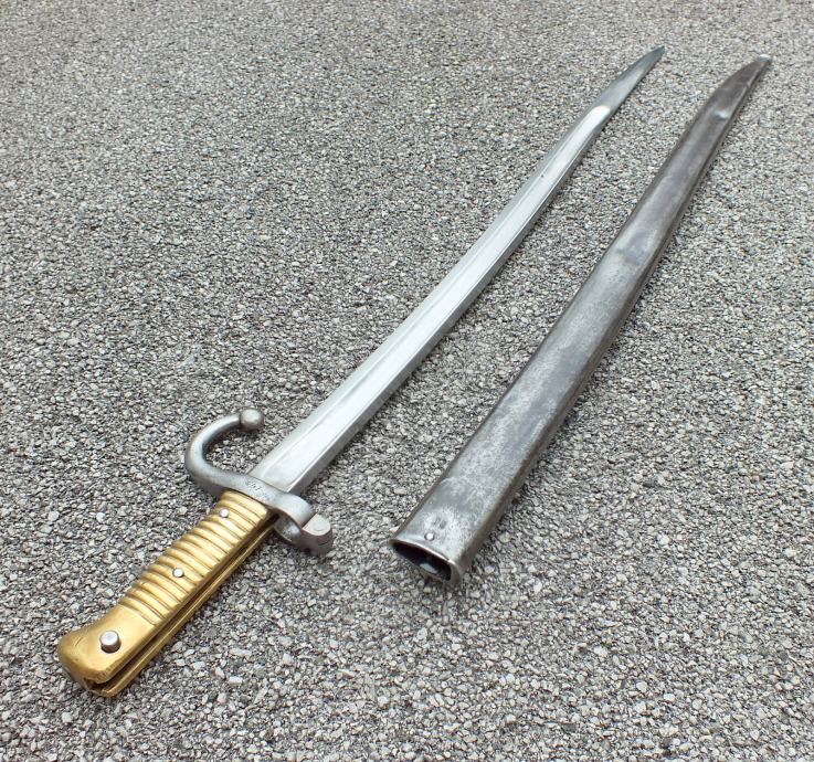 Prodajem bajonet koji se vidi na slikama. Ove bajunete su proizvele tri njemačke tvrtke Solingen: Alexander Coppel, Gebruder Weyersberg i W.R. Kirschbaum. Remington bajunet, koji je klon francuskog M1866 Chassepot bajuneta, razlikuje se od francuskog M1866 po tome što nema skošeni utor na kraju ručke i nema utor na unutarnjem vrhu prstena. Na zadnjoj objavljenoj slici lijevo je Remington grip, a desno Chassepot grip. Fotografije su dio opisa. Privatna prodaja, roba se prodaje bez ikakvih garancija (zahtjev za nedostatak). Dobrodošli ste pogledati moje ostale oglase.