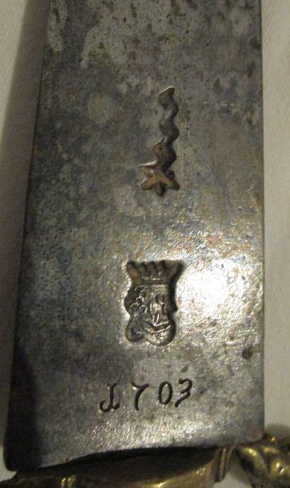 Bajonet Spund, njemački, označen pečatom Solingenske kraljeve glave i datiran 1703.,