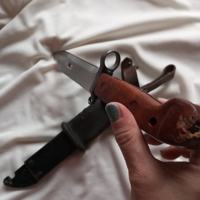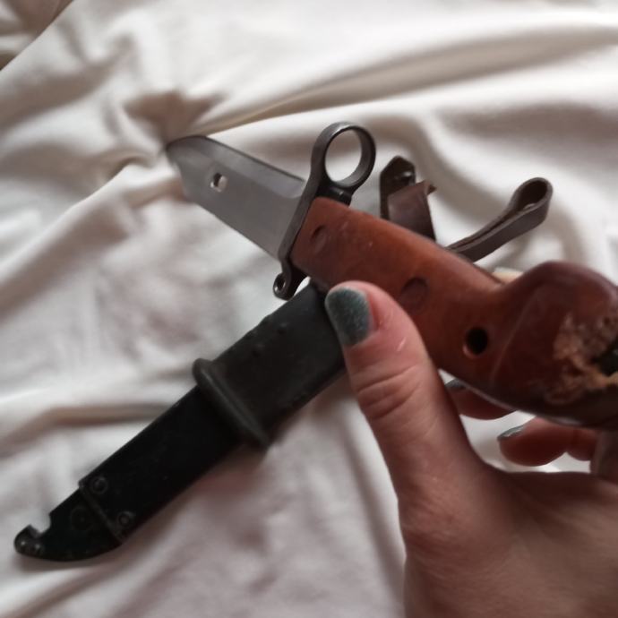 Ruska bajonetu AKM M59 6h3, raniji model,ima rijedak broj arsenala 4 na braniku bajonete.