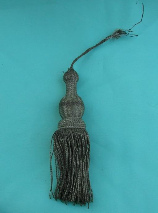 Držak s dvije metalne ljuske, zakovicama pričvršćen za vrh, poprečno odvojen s 15 žljebova.