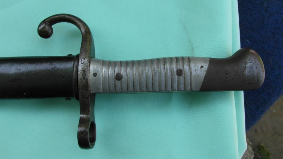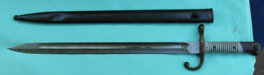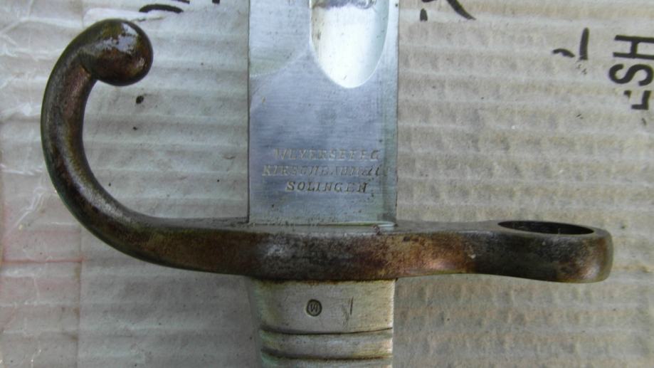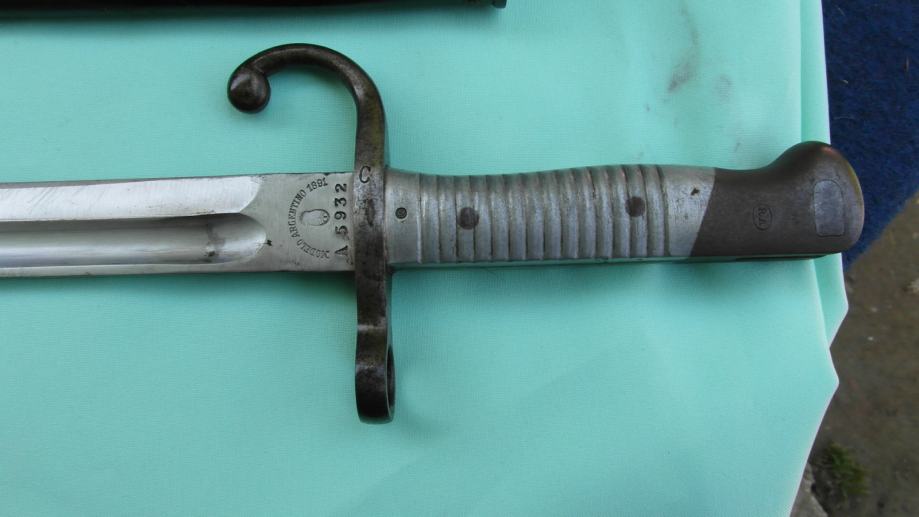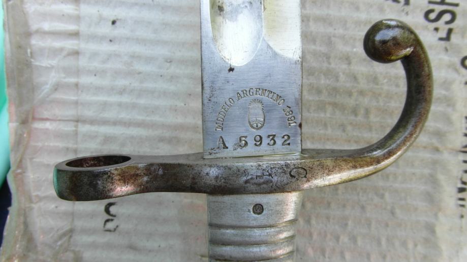 Proizvedeno u Njemačkoj od strane Weyersberg, Kirschbaum & Co Solingen za argentinski model puške Mauser 1891 kalibra 7,65 x 53 mm.