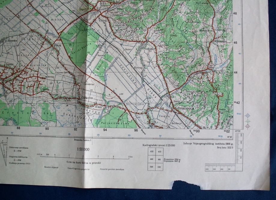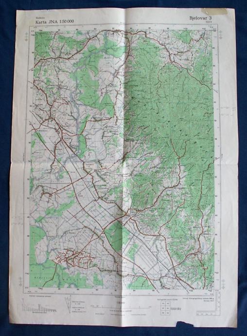 BJELOVAR 3 - VOJNA KARTA 1:50.000 Vojnogeografski institut 1969