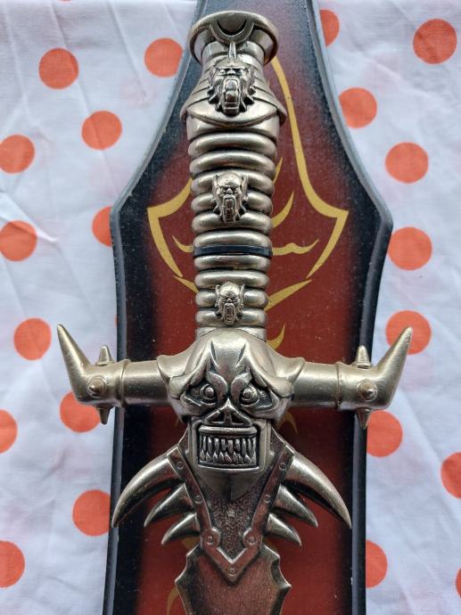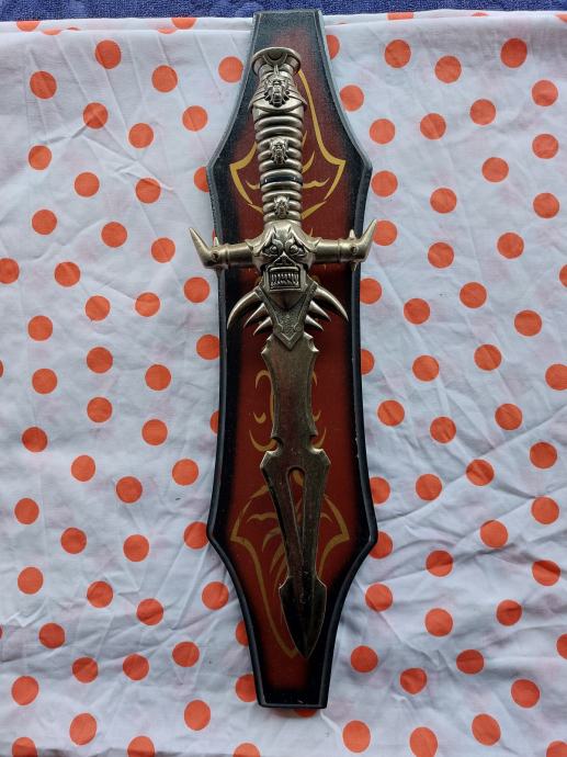 displej drvo 49 x 12cm; bodež ručka mesing ukupno 40cm, oštrica 21cm
