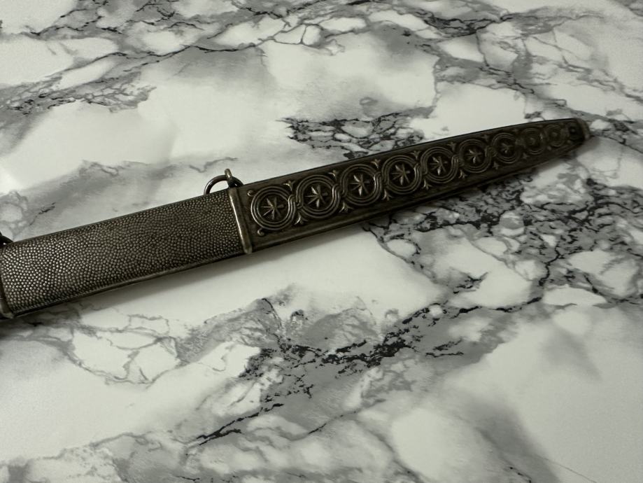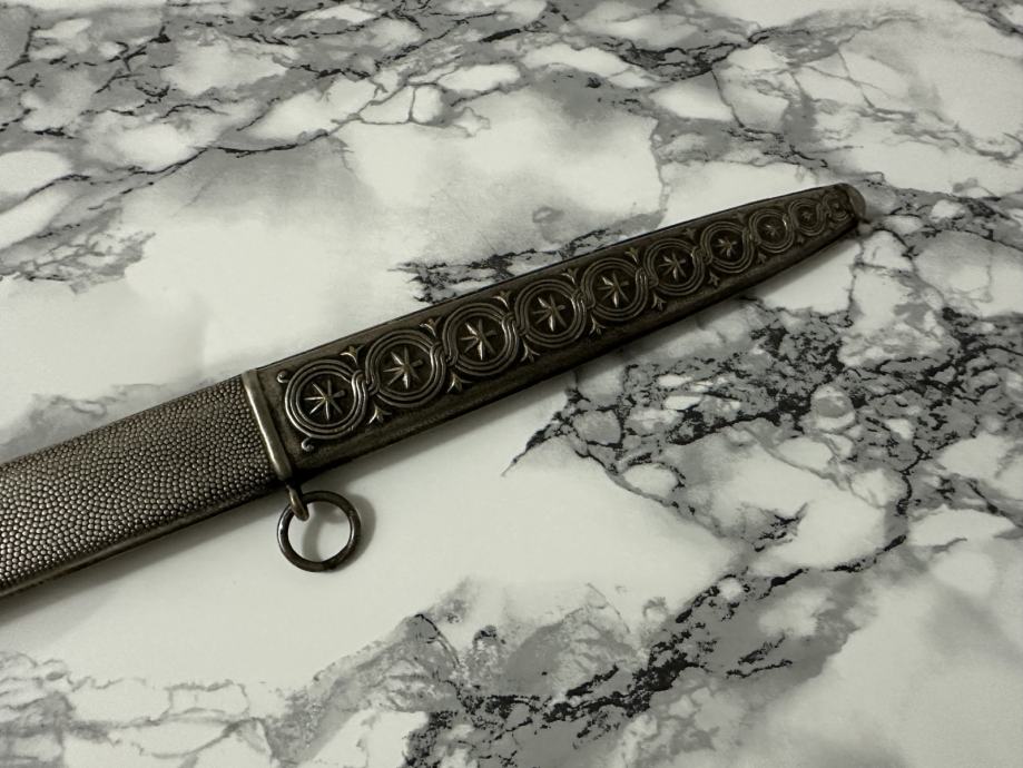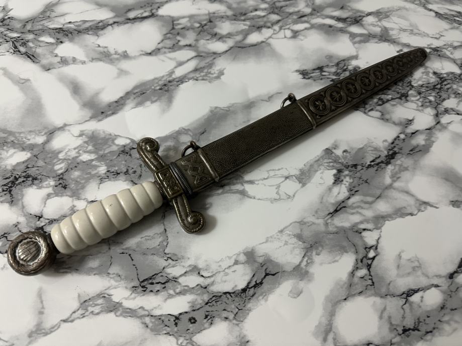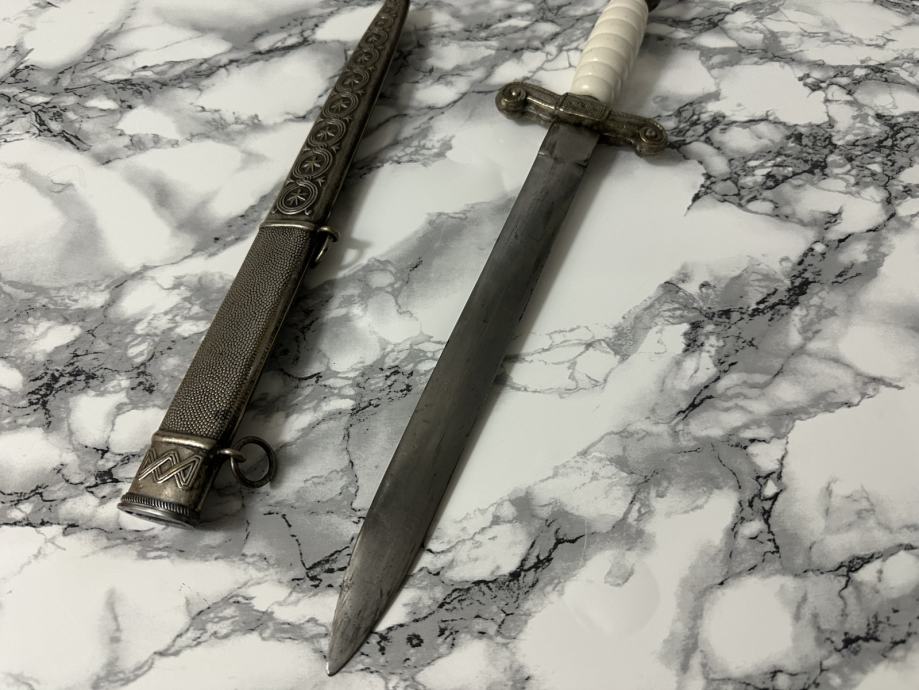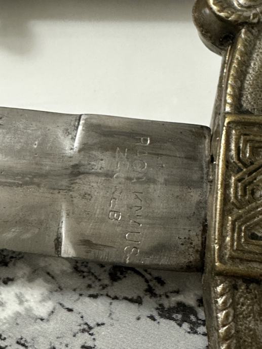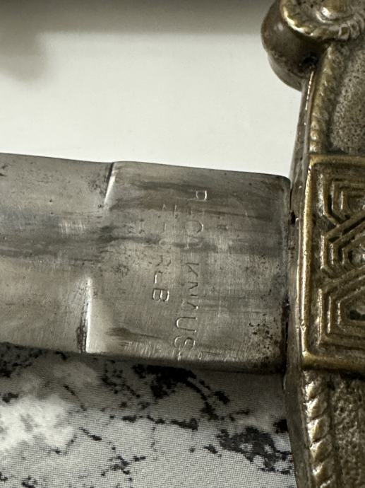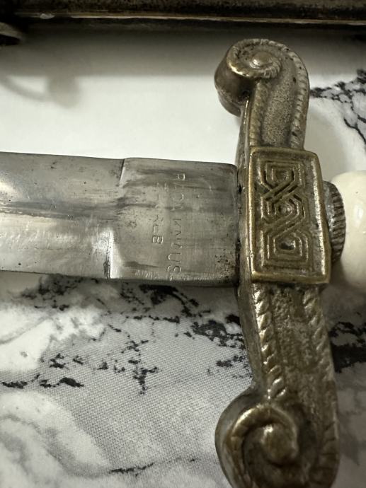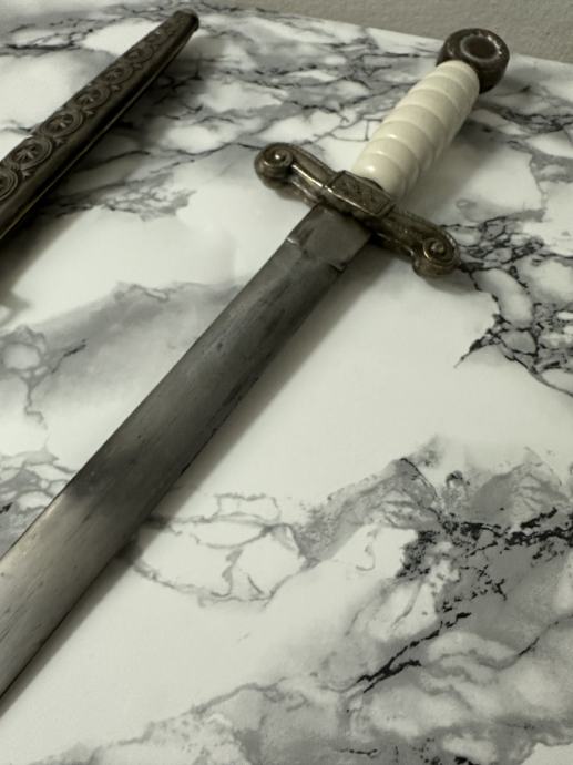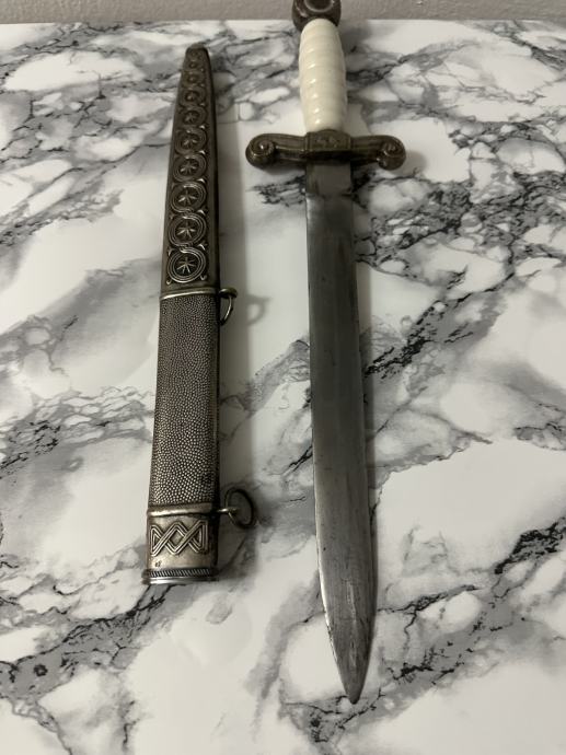Originalno stanje, bodež bez oštećenja, drvena drška, oznaka na oštrici.