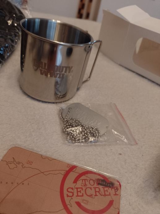 Navedena cijena je za cijeli komplet koji sadrži dvije staklene čaše,limena šalica, figura vojnika,vunena kapa s lovom,metalni lančić s pločicama o podmetači.