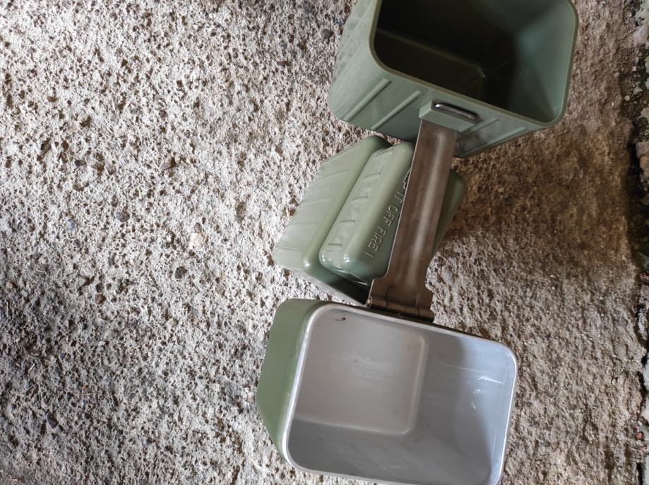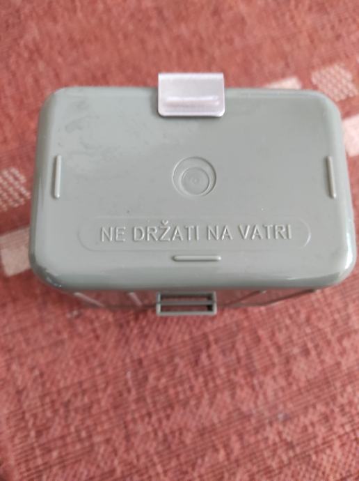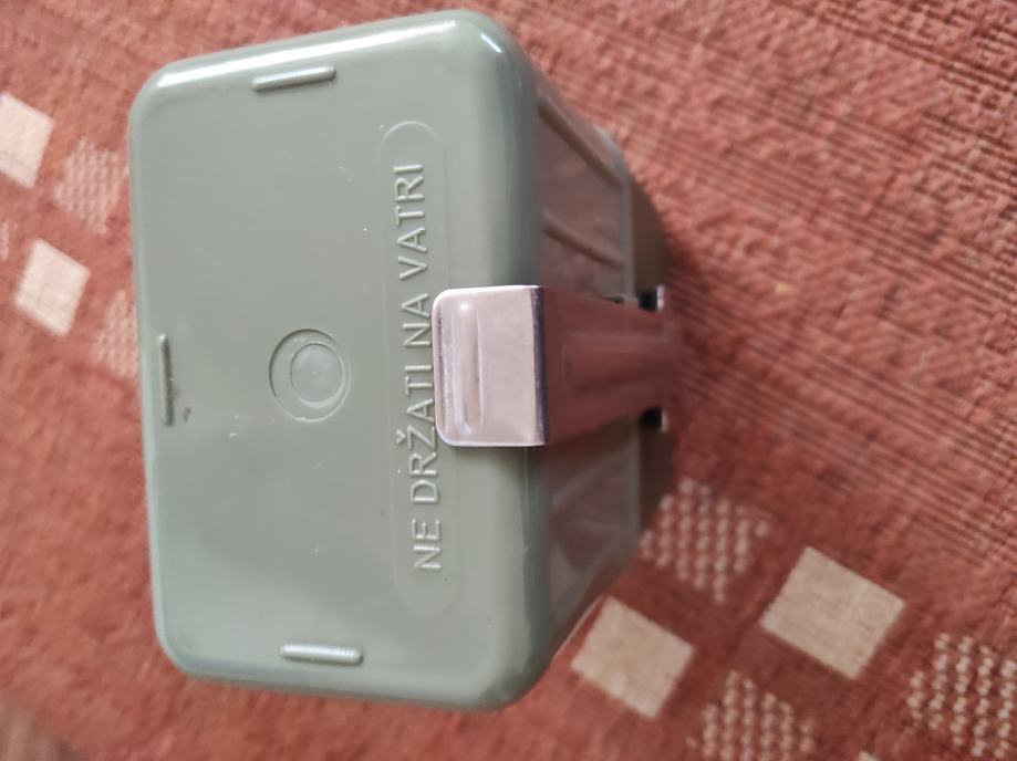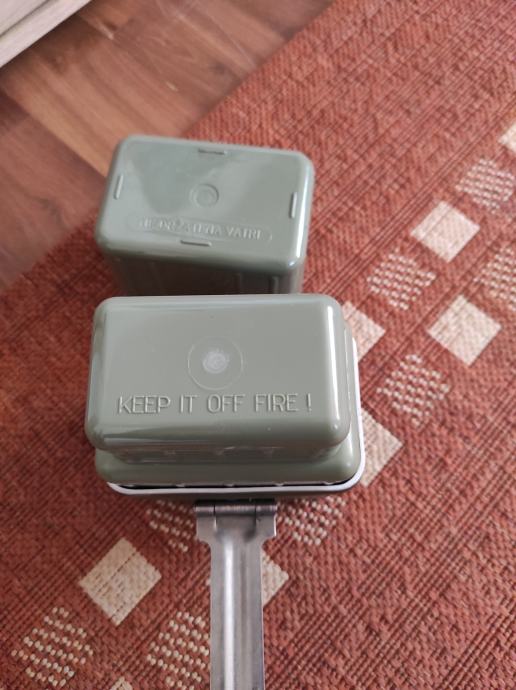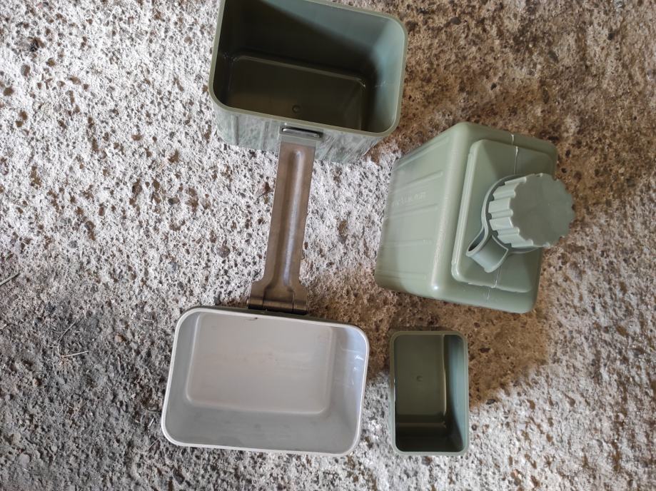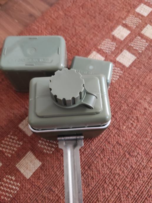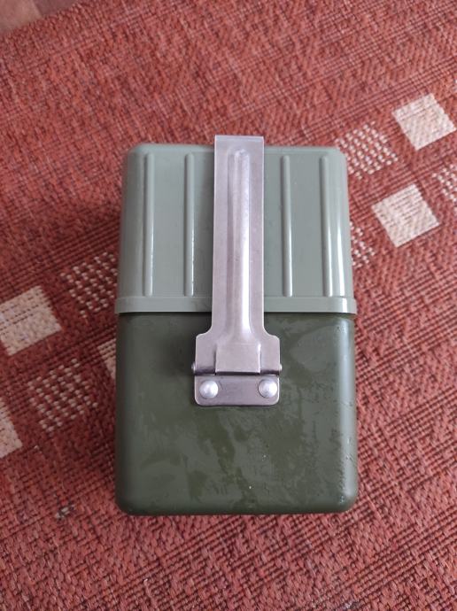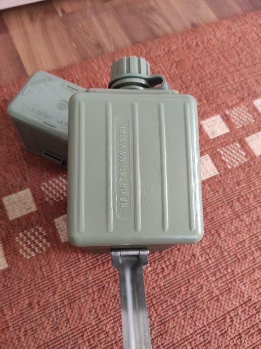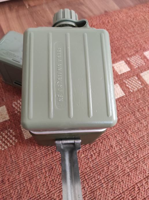 Vojna ČUTURA sa dvije posude,aluminijskom i plastičnom te sa casom,sve skupa je sklopivo u jednu kutiju.Pribor je ne korišten sto se vidi na slikama .Za sve informacije nazovite na broj telefona ili upit na Viber ili njuskalo, a saljem postom ili tiskom ili u dogovoru sa kupcem.Pogledaj slike!!