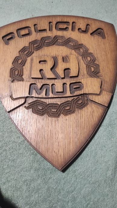 Drveni grb Mup-POLICIJA,dimenzije 40x33cm,hrast