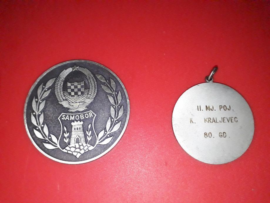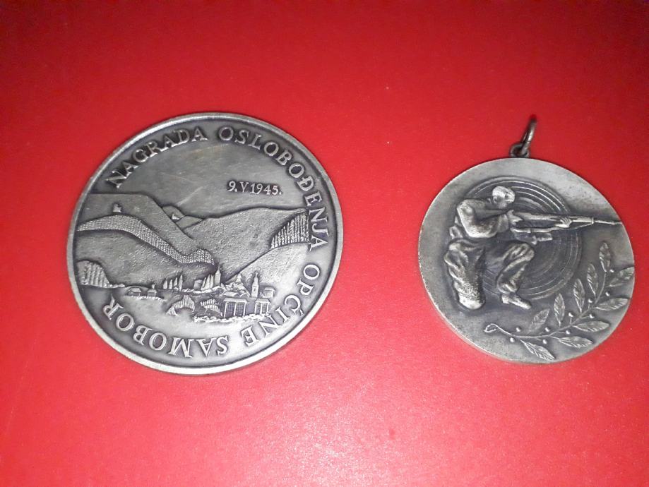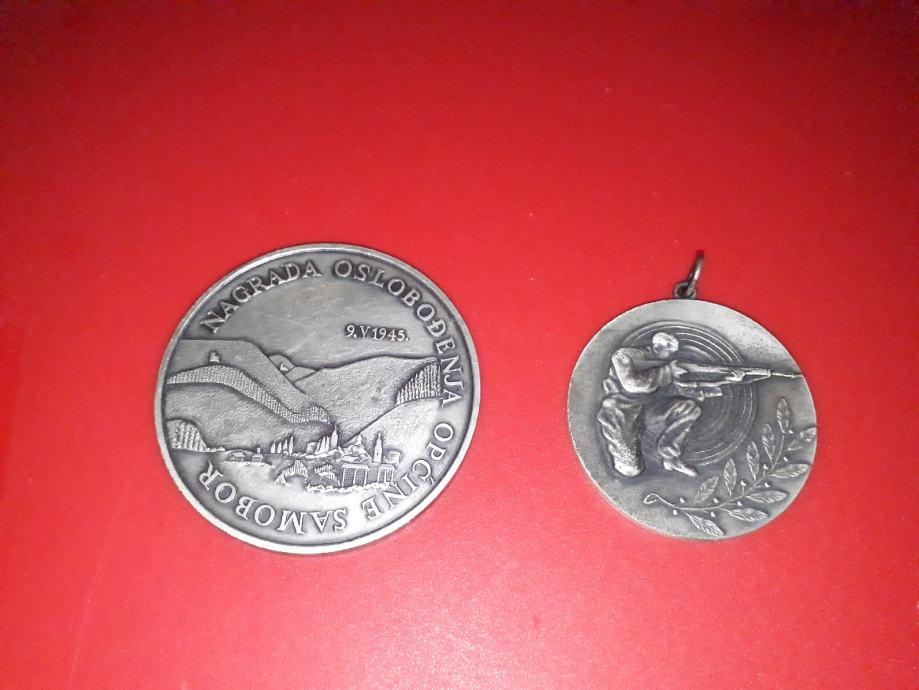 Nagrada za oslobođenje Samobora promjera 6.5cm i medalja za drugog strijelca pronjera 5cm.prodaja u kompletu.šaljem tisak ili pošta.