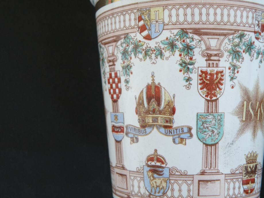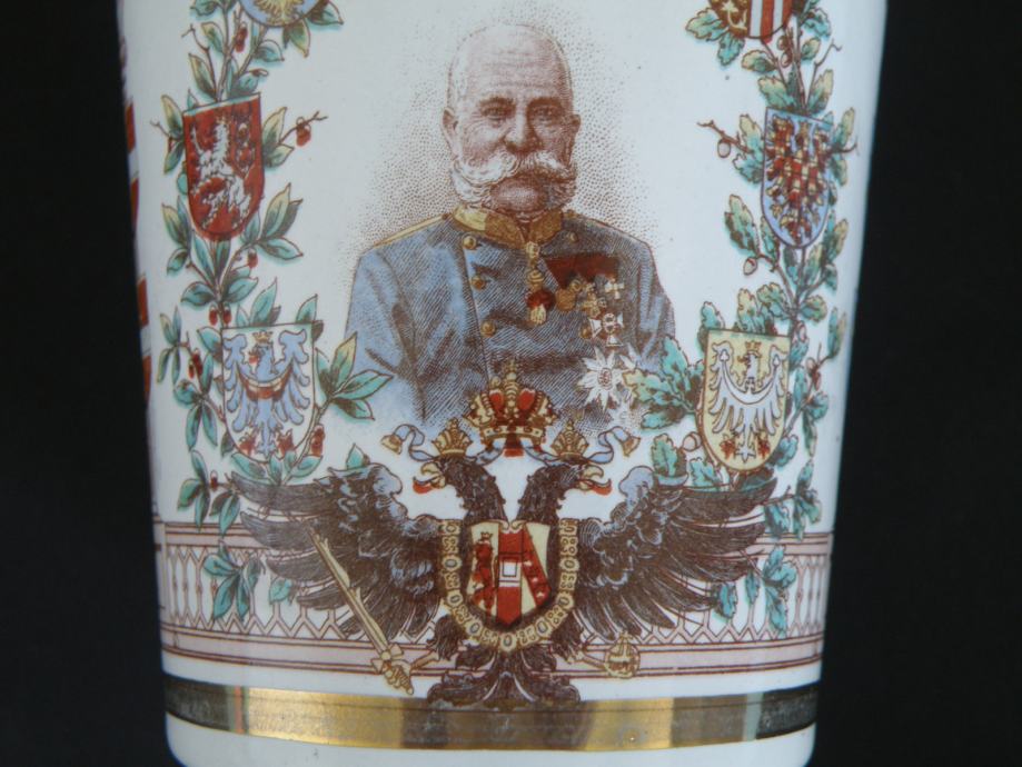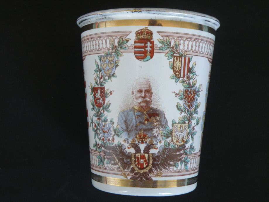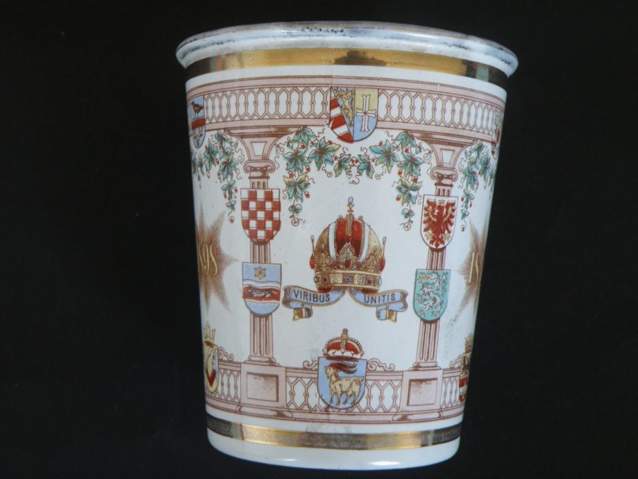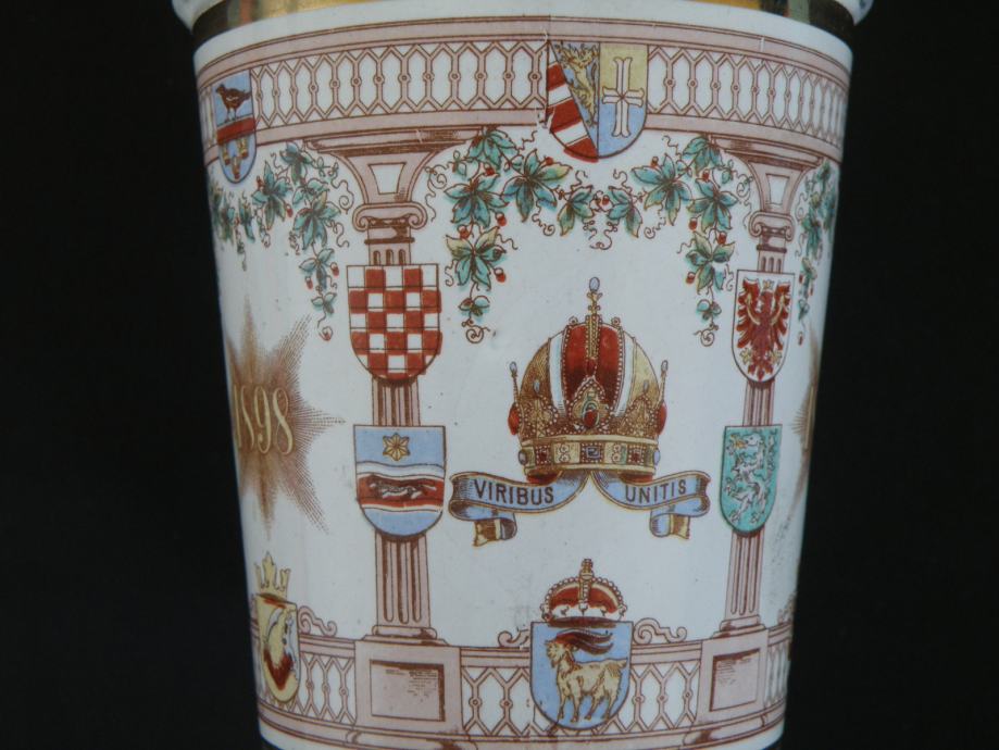 Interesantna čaša na kojoj su svi grbovi carskih zemalja a najinteresantnije da se po prvi puta na čaši pored grebova Hrvatske Slavonije i Dalmacije , nalazi i grb ISTRE , u obliku štita na kojem se nalazi , koza sa monarhističkom habsburškom krunom iznad štita .
