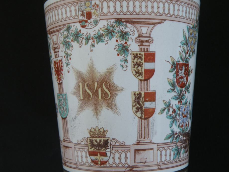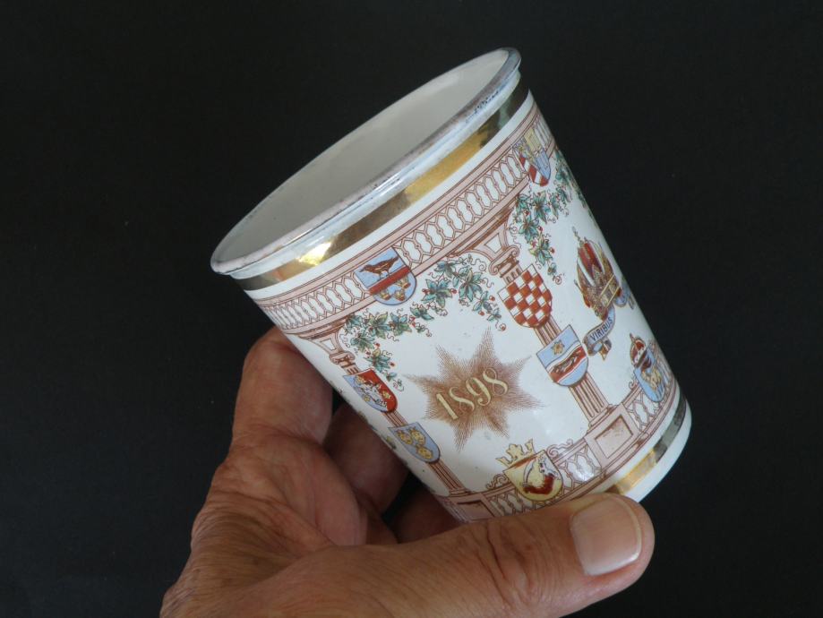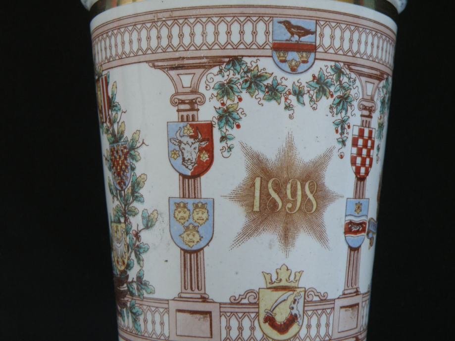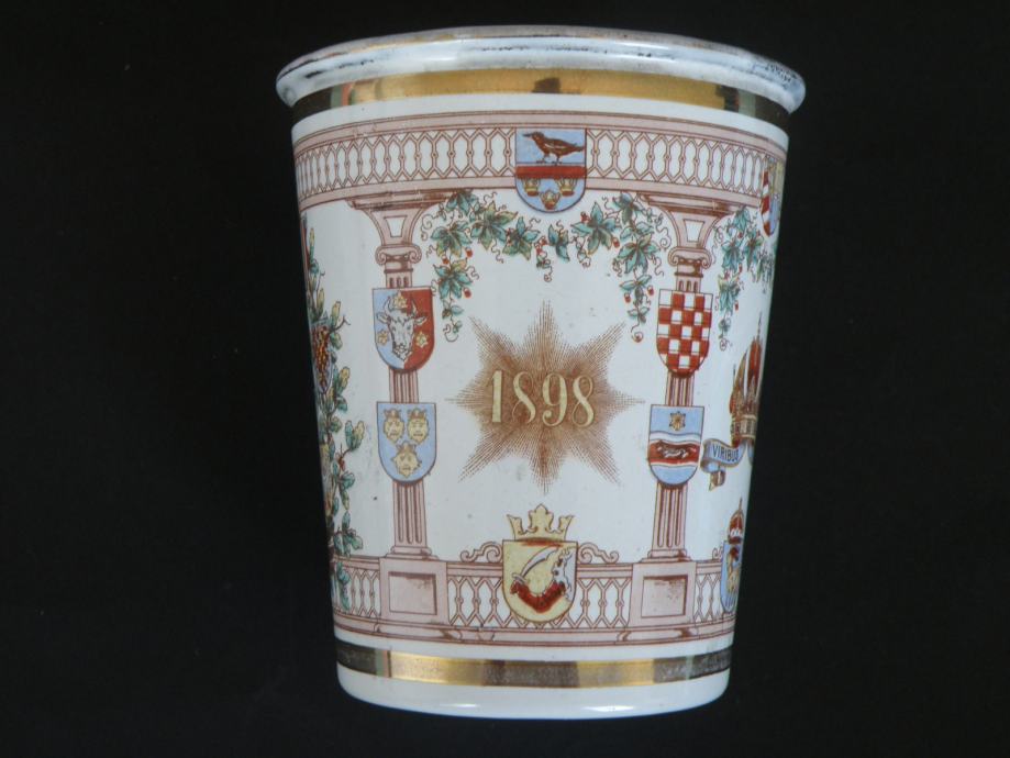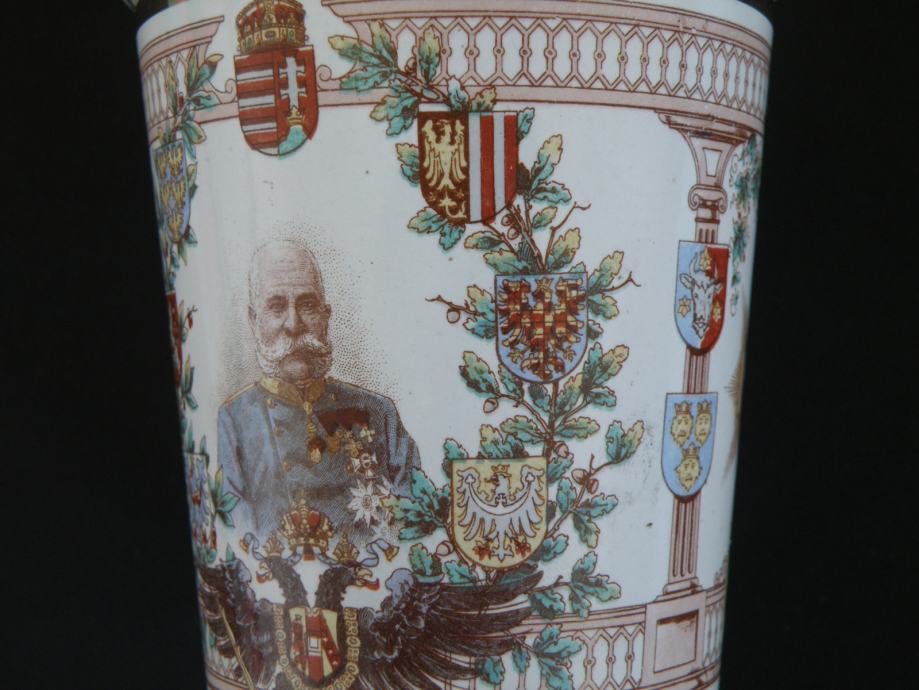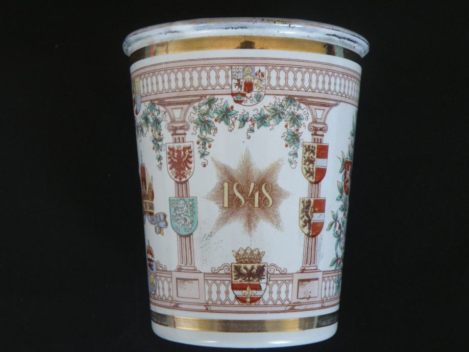 Interesantna čaša na kojoj su svi grbovi carskih zemalja a najinteresantnije da se po prvi puta na čaši pored grebova Hrvatske Slavonije i Dalmacije , nalazi i grb ISTRE , u obliku štita na kojem se nalazi , koza sa monarhističkom habsburškom krunom iznad štita .