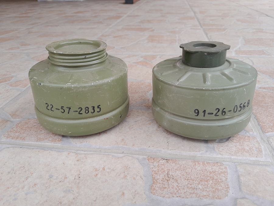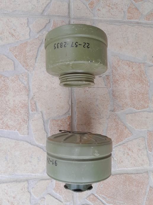 Prodajem 2 filtera za gas maske iz doba JNA,stanje kao na slici,nisu rabljeni,šaljem pouzećem na trošak kupca,cijena je za obadva