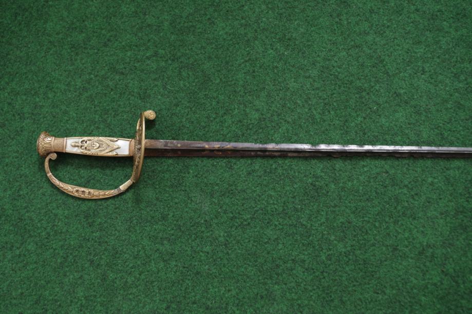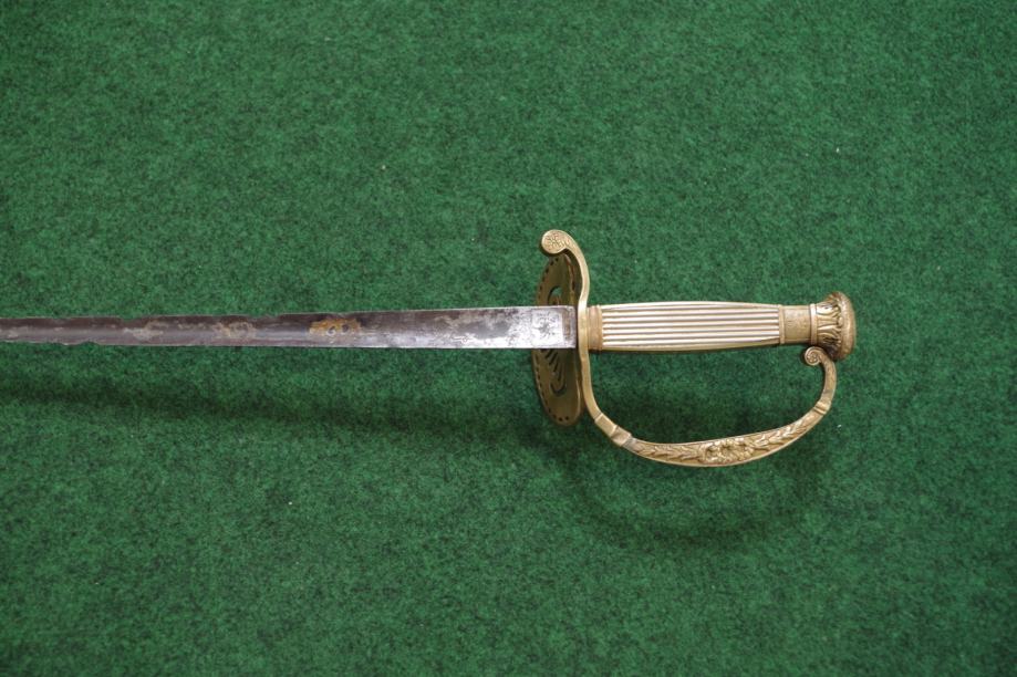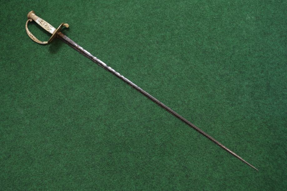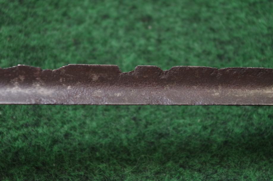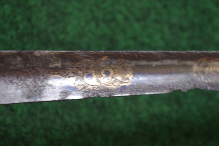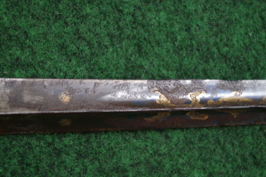 Ravno trobridno sječivo sa ostatcima pozlate i bruniranja, djelomično oštećeno korozijom