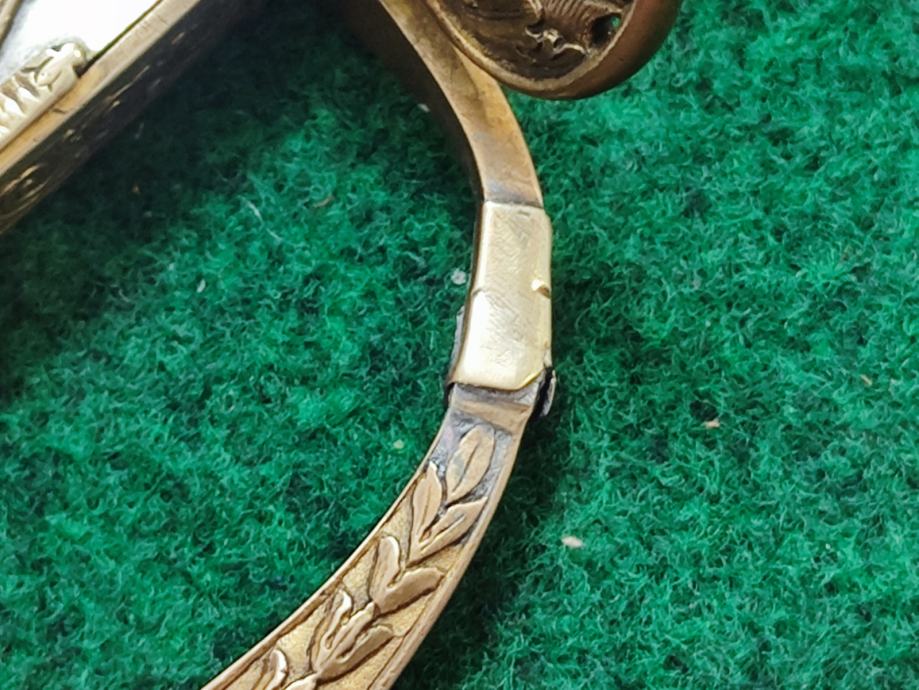 Štitnik od mjedi sa ostatcima pozlate, oštećenn rukobran