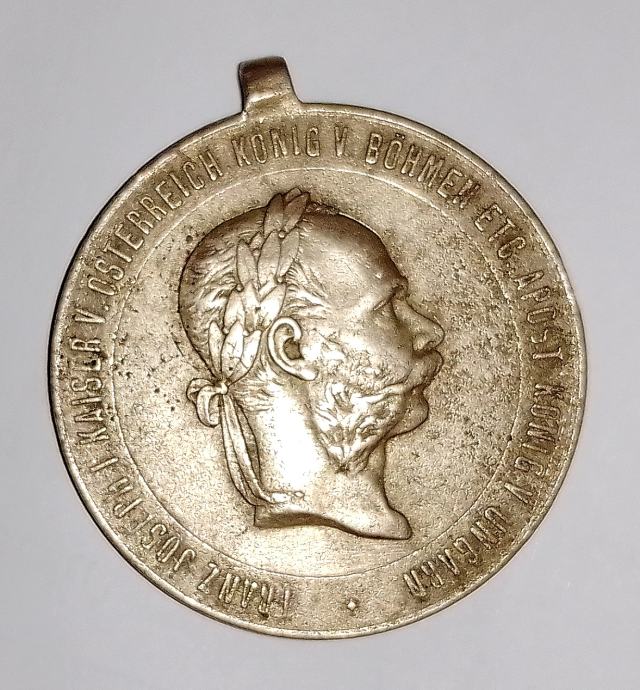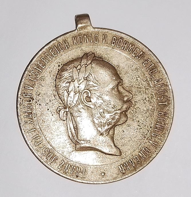 Avers: Unutar uzdignutog ruba nalazi se poprsje cara Franje Josipa I. okrenutog udesno s lovorovim vijencem u kosi. Na rubu medalje ispisano je FRANZ JOSEPH I KAISER V. ӦSTERREICH KӦNIG V. BӦHMEN ETC. APOST. KӦNIG .V. UNGARN.