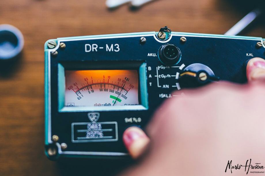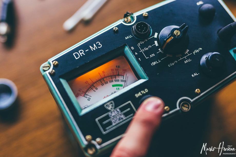U potpunosti ispravan i u vrlo dobrom stanju. Radi na baterije ili vanjsko napajanje. Isprobano na 12VDC sa potrosnjom od cca 3.5W. Dolazi sa sondom sa filterom za mjerenje beta ili beta&gama zracenja, slusalicom, baterijama i kabelom za vanjsko napajanje od 12 ili 24VDC.