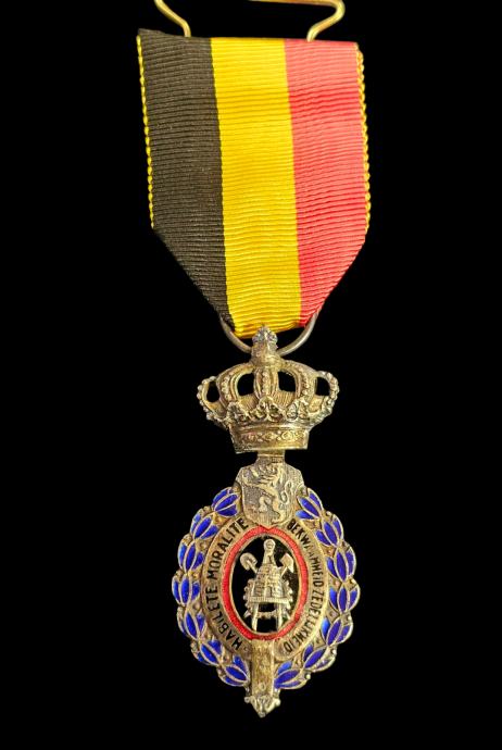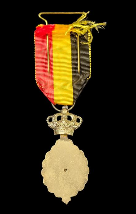Emajlirana Belgijska medalja rada za 30 god rada u poljoprivredi i industriji ,ovalno srebrna ukupna veličina sa kružičem kroz koji prolazi vrpca 6,2 cm