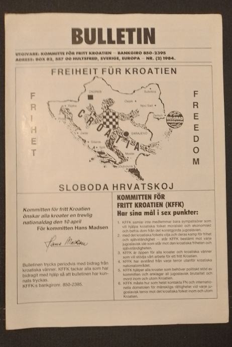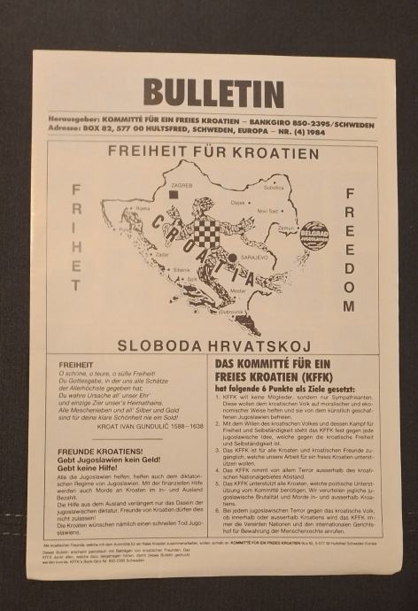 4. Bulletin Ureda za oslobodenja Hrvatske (Svedska) br. 2