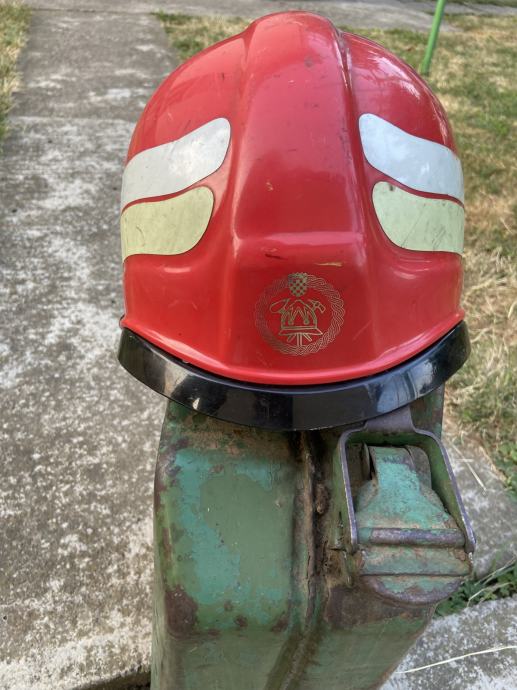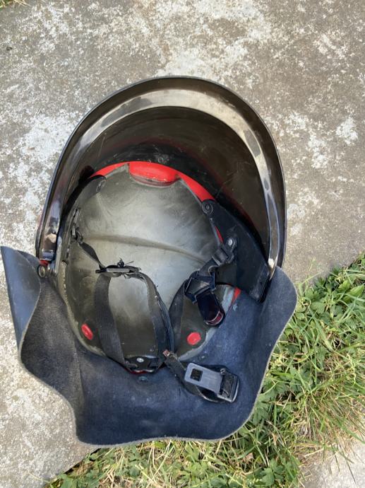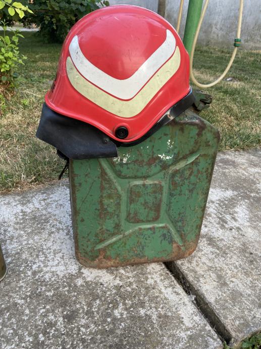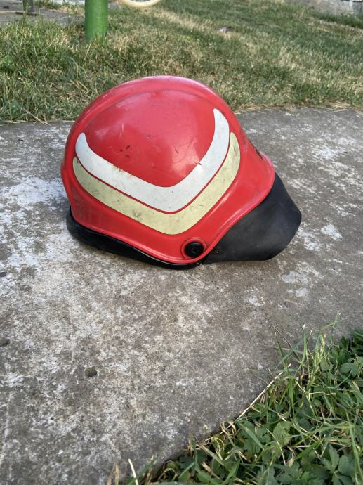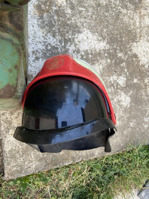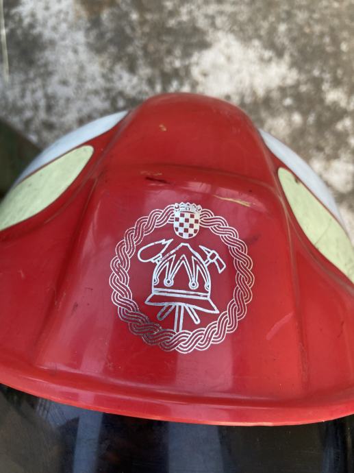 Hrvatska vatrogasna kaciga, nacionalni model korišten od 2005. Kaciga izrađena od visokočvrste plastike, crvene boje s bijelom trakom koja je okružuje. Na prednjoj strani ima logo Hrvatske vatrogasne postrojbe. Također ima sklopivi vizir koji pokriva cijelo lice. Uključuje crni kožni štitnik. Univerzalna podesiva unutrašnjost s platnenim i kopčom, u dobrom stanju. Proizvedeno u Hrvatskoj